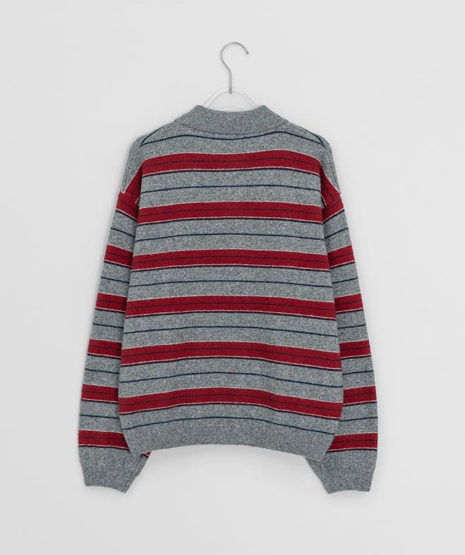 ソーセルウールボーダー襟付きニット