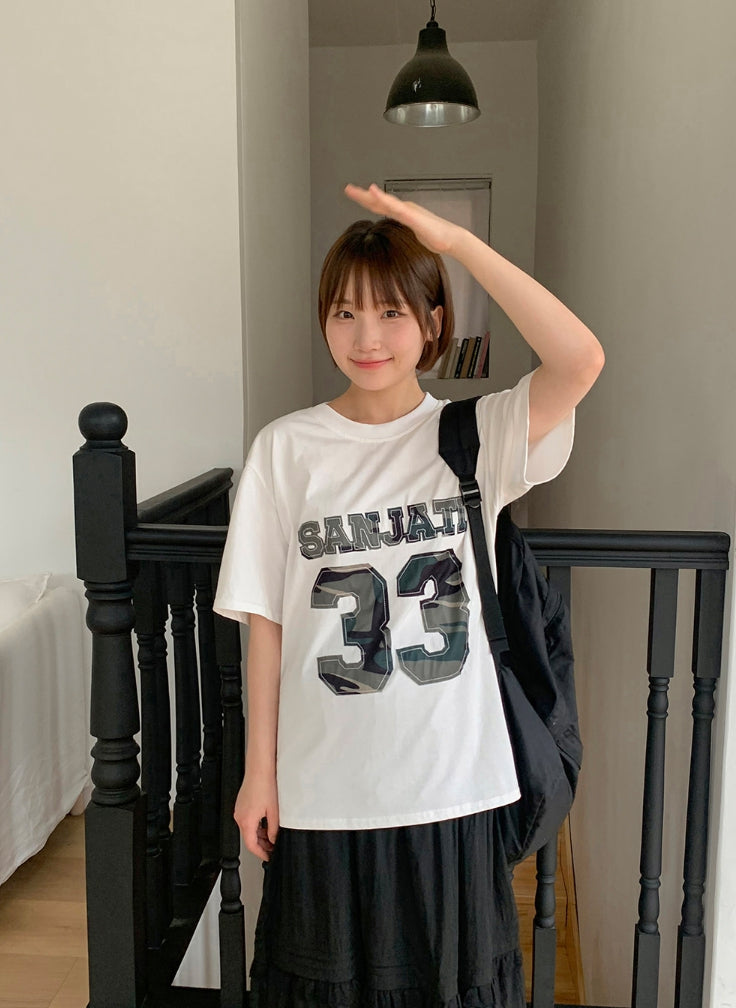 Sponk Camo Embroidery Lettering Short Sleeve Tee