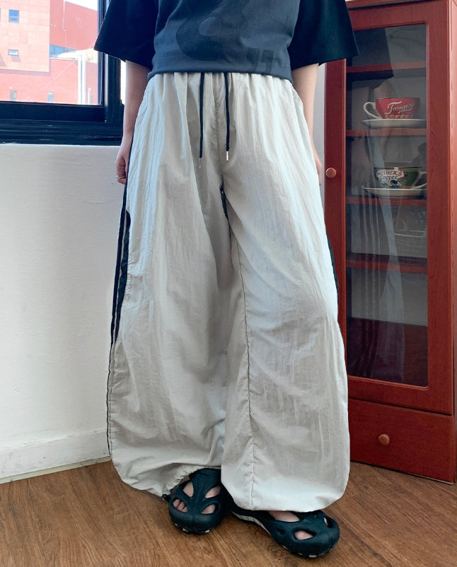-ONE SIZE (ウエスト(ゴム)66-80 ヒップ114 股上30 股下75 もも周り72 裾周り(調節可能)24-53 総丈105)