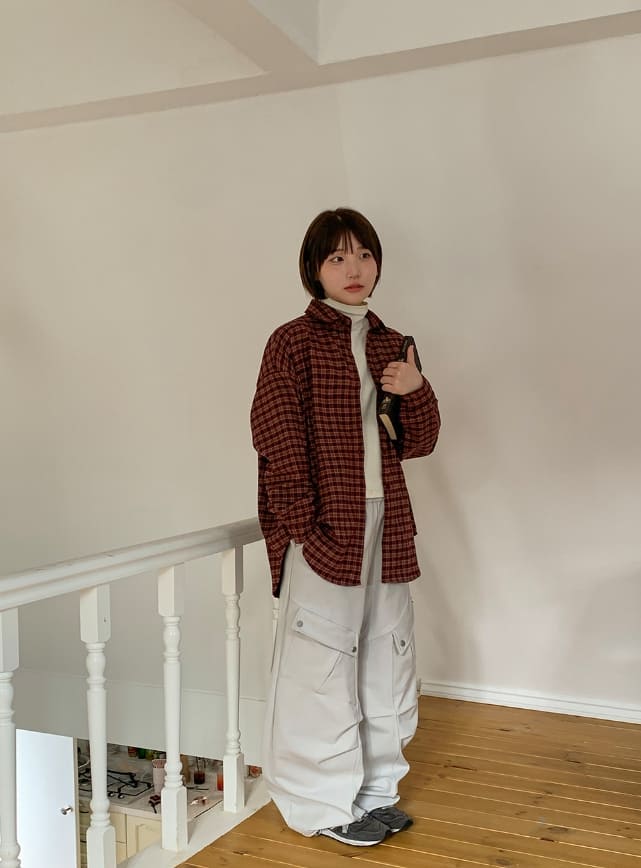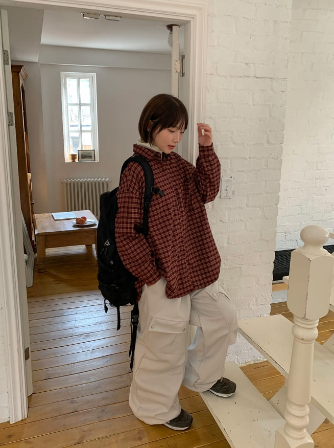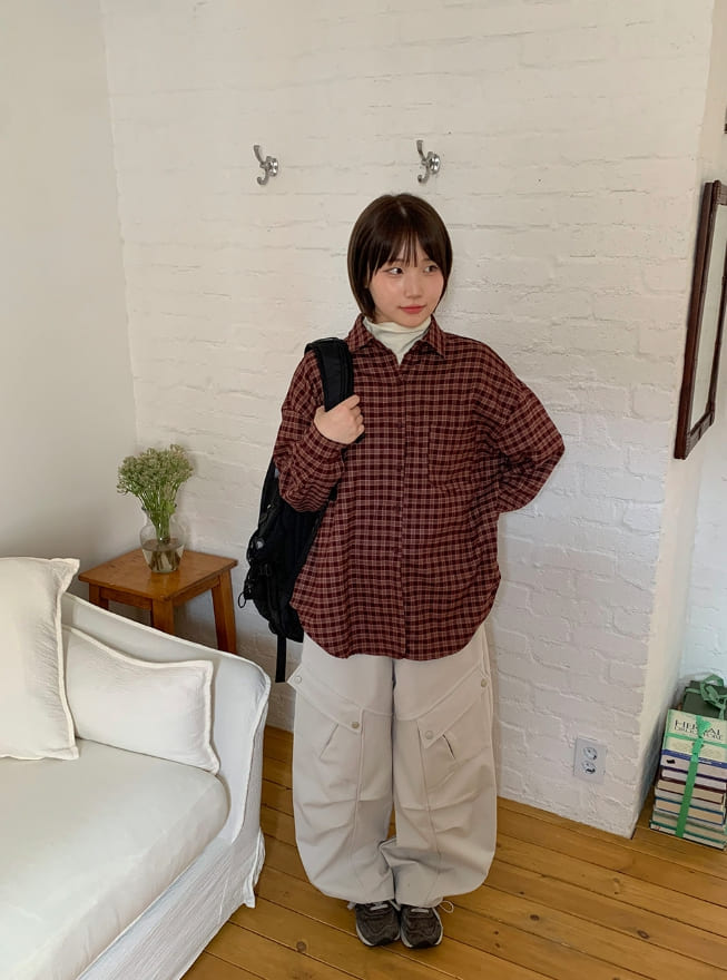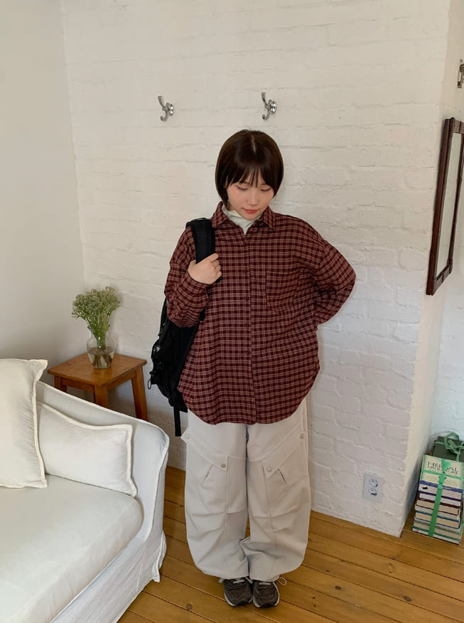Syuin Pocket Peach Fuzz Check Shirt
