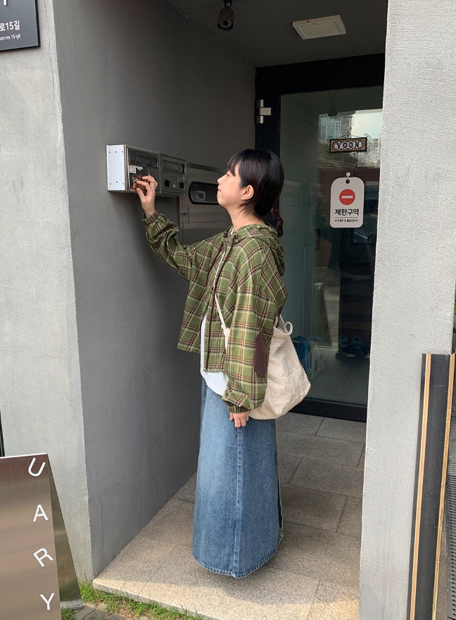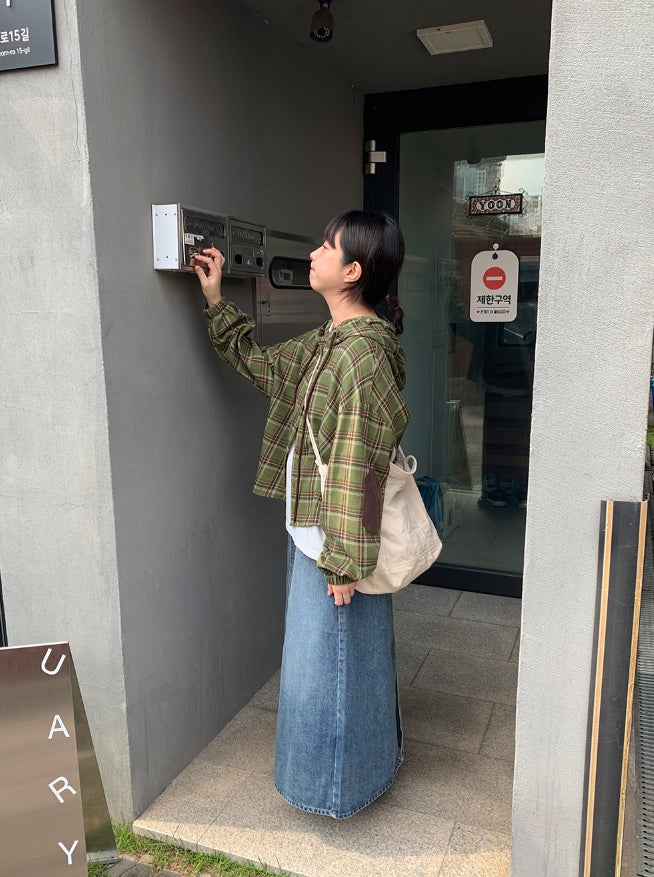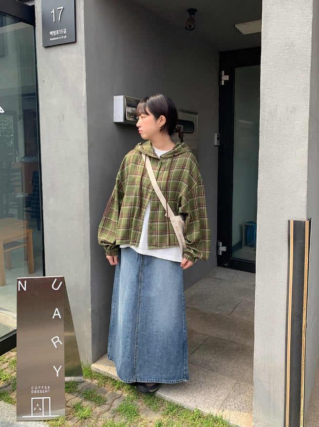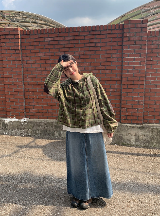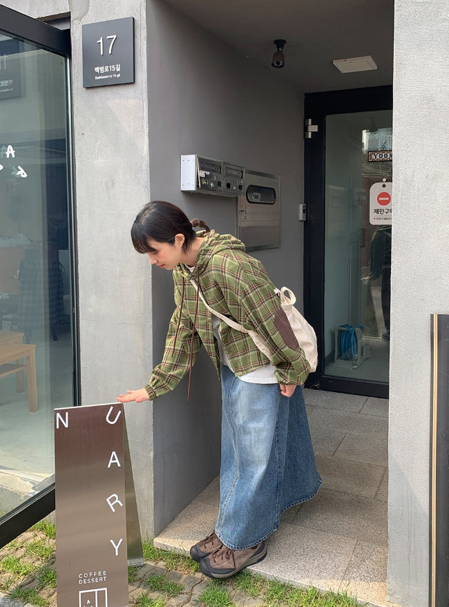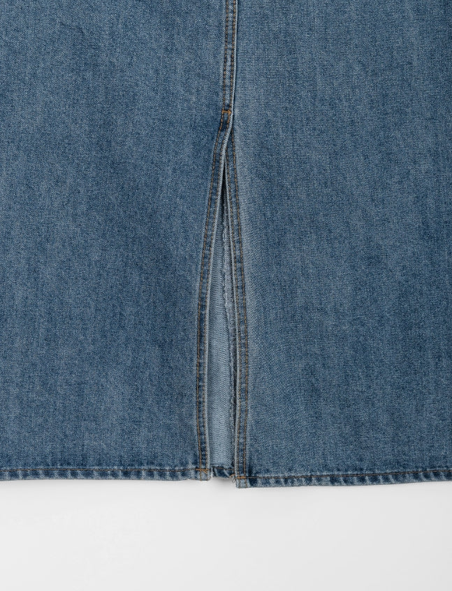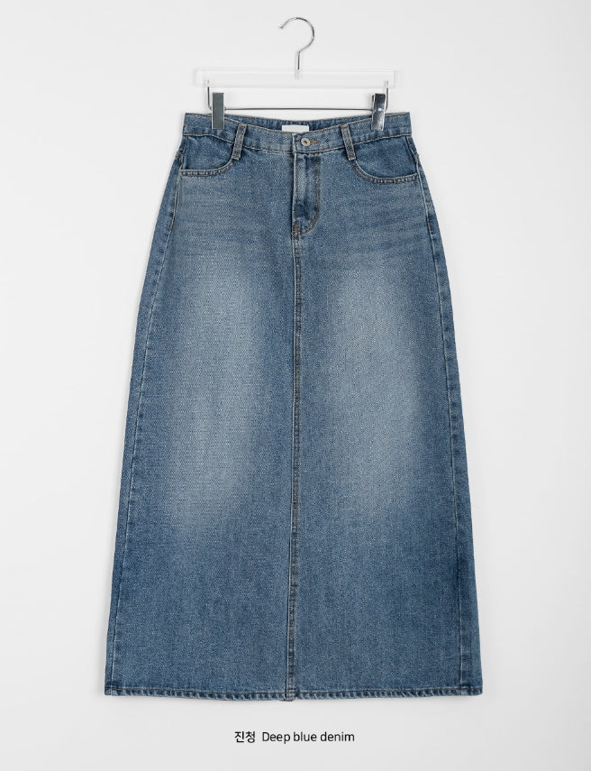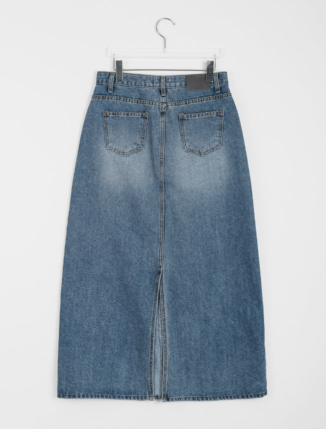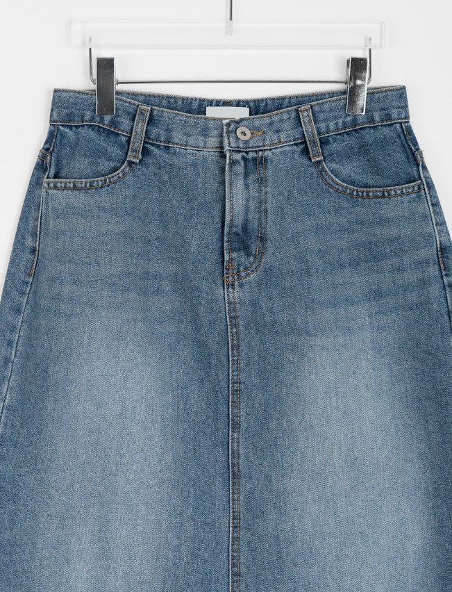 トモニビンテージデニムウォッシュ加工ロングスカート