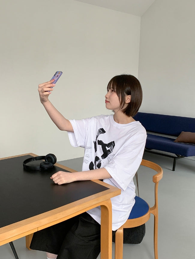 [男女兼用]アケルプリントオーバー半袖Tシャツ