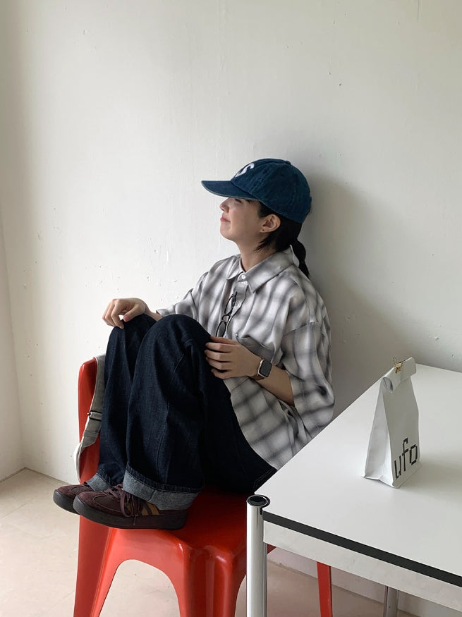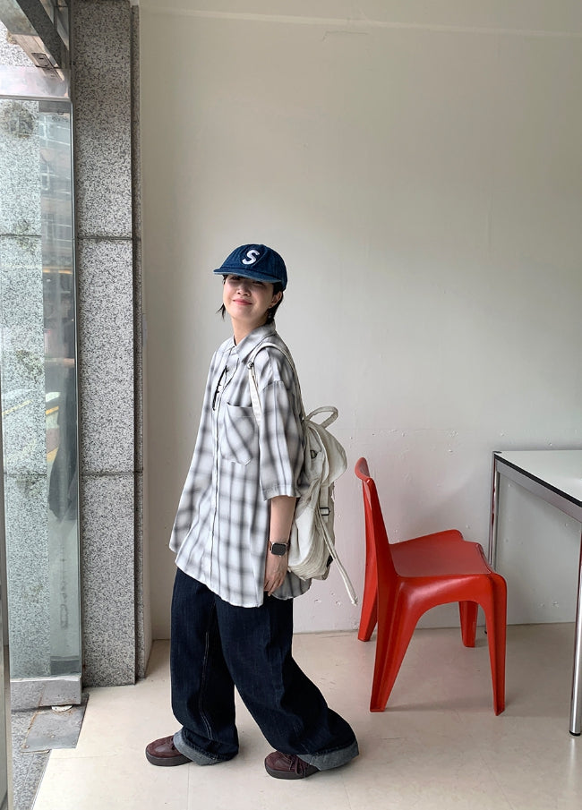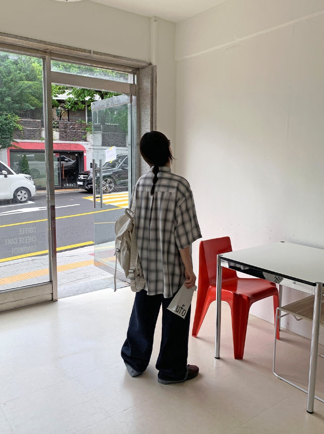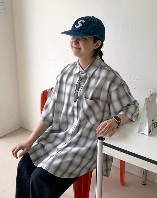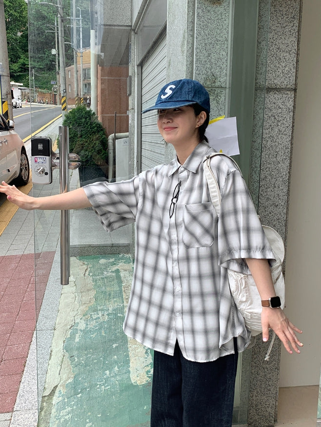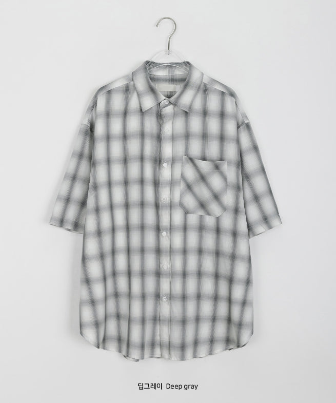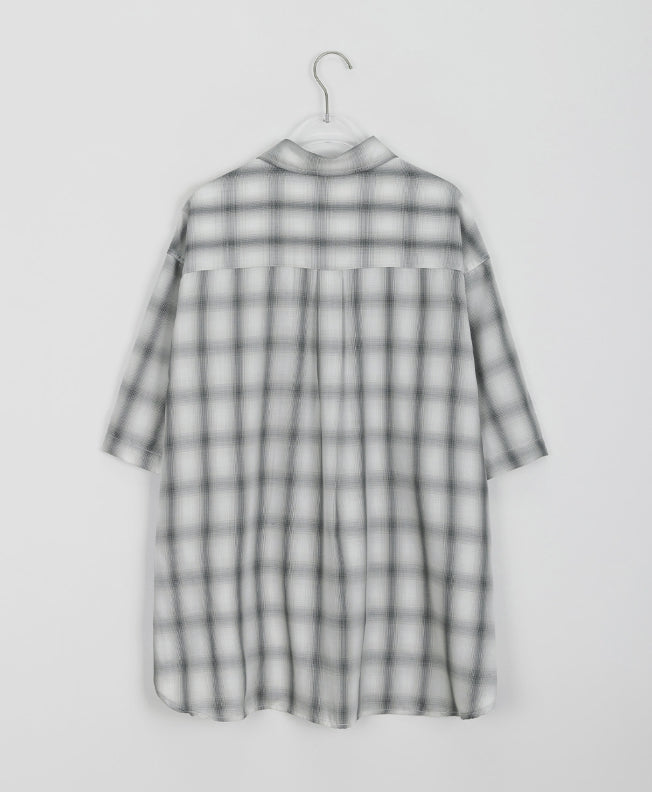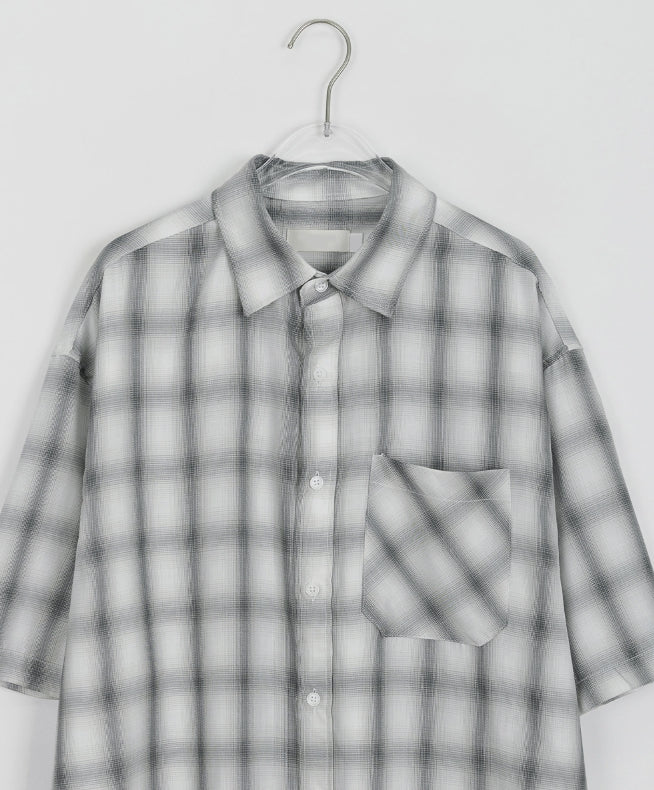 [男女兼用]ブリーニカラーチェックオーバー半袖シャツ