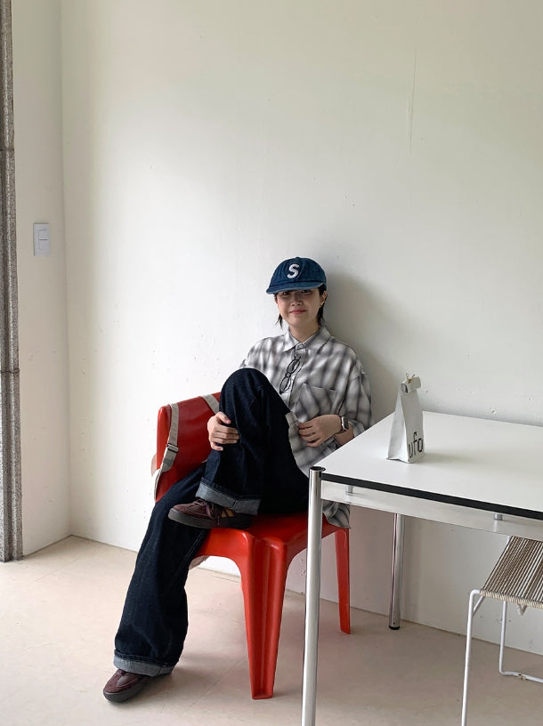 [unisex] Blini Color Check Over Short Sleeve Shirt