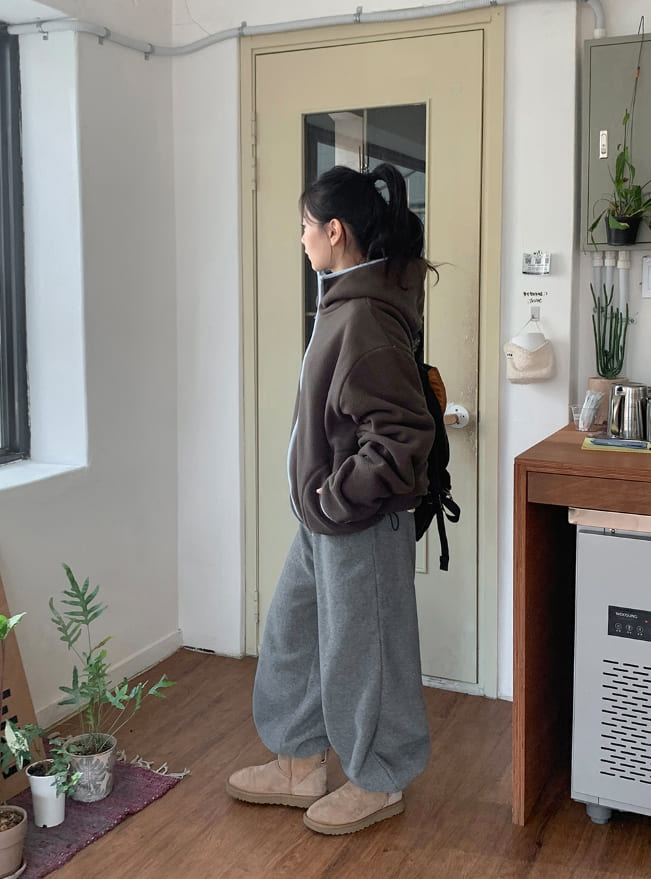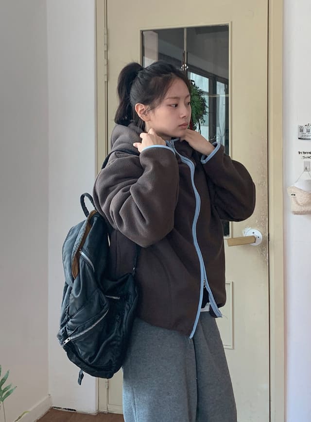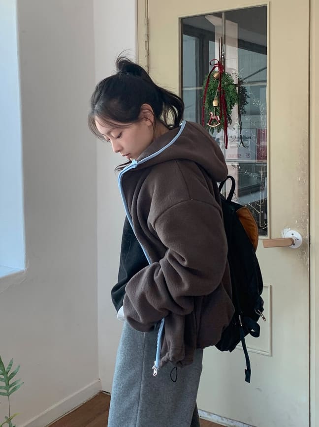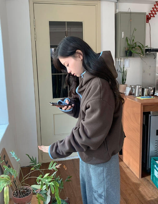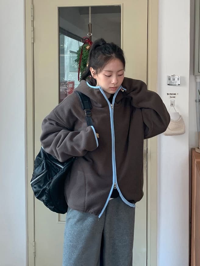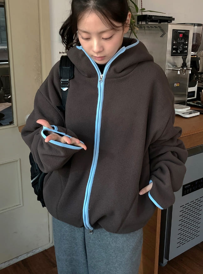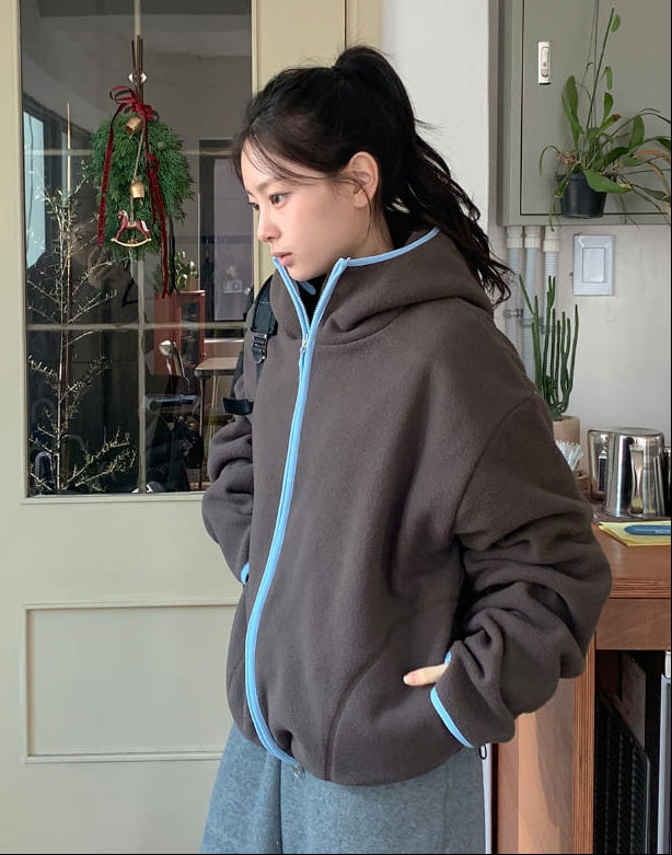 [unisex] Canie Hood Color Matching Fleece Zip-Up Jumper