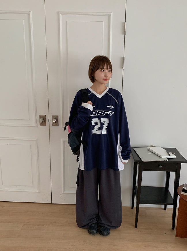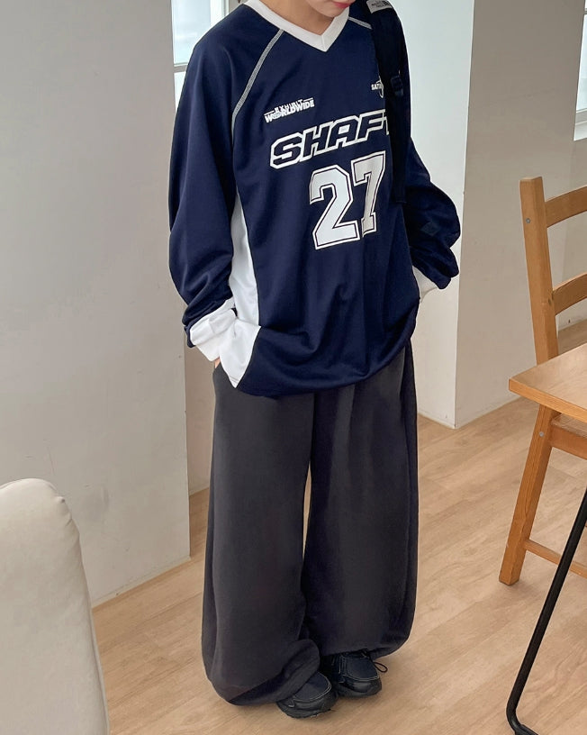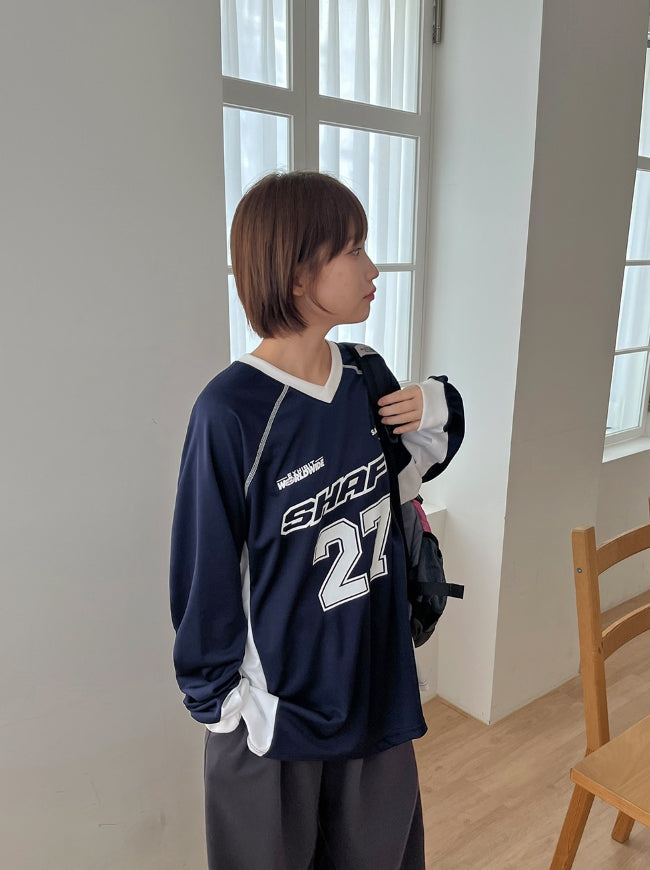 [Unisex] Charenty Color Matching Sporty Printing Long Sleeve Tee