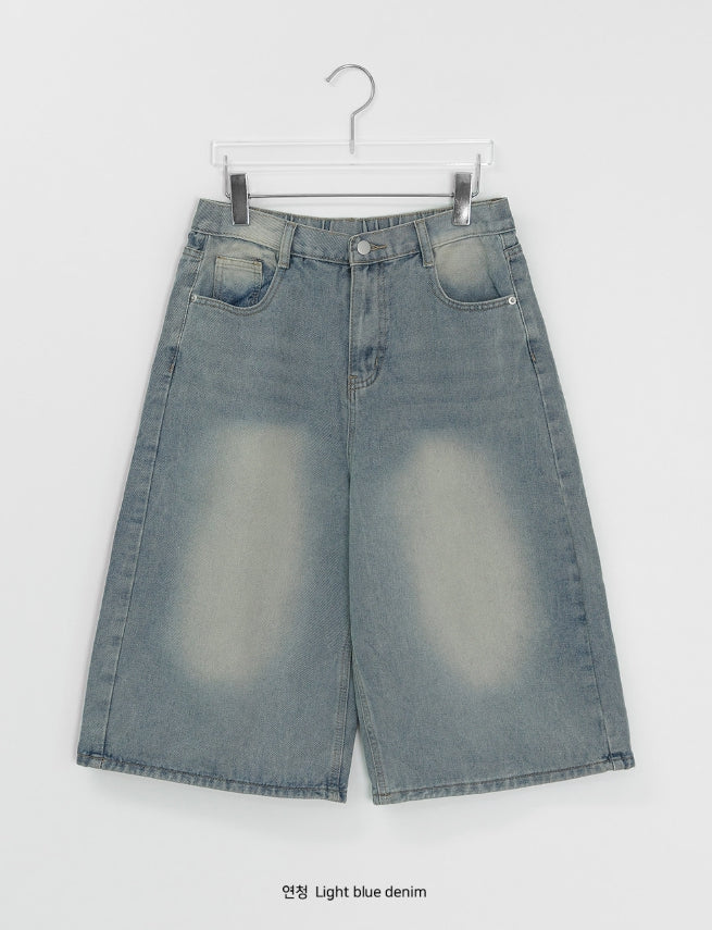 [Unisex] Collend Banding Washing Denim Bermuda Pants