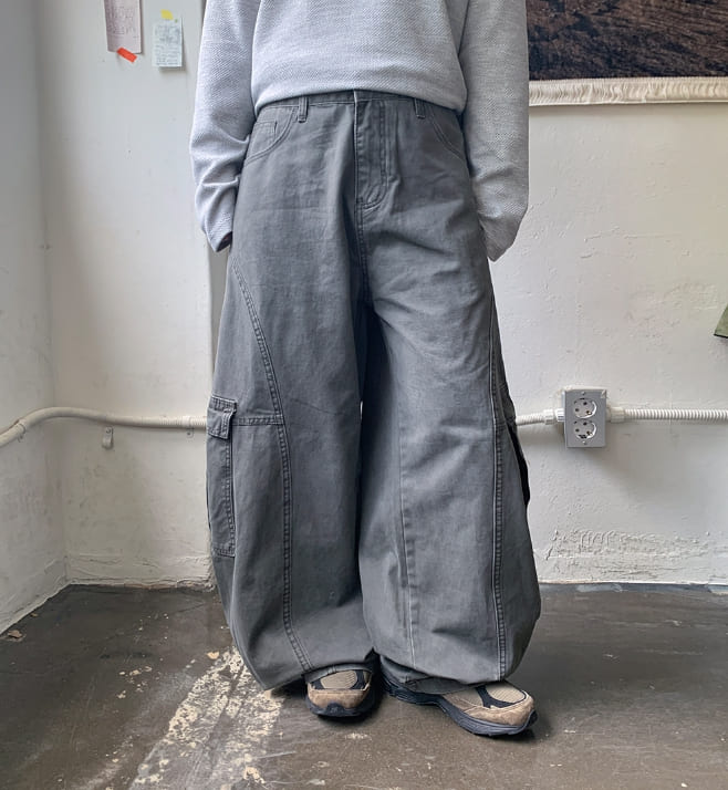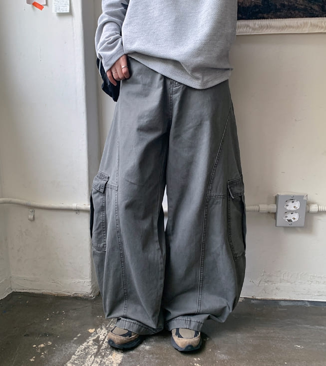 [unisex] Collet Pigment Curved Cargo Balloon Wide Pants