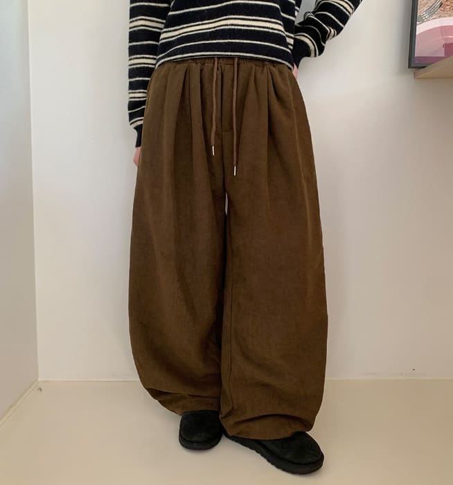 [Unisex] Combs Brushed Corduroy Banding Wide Pants