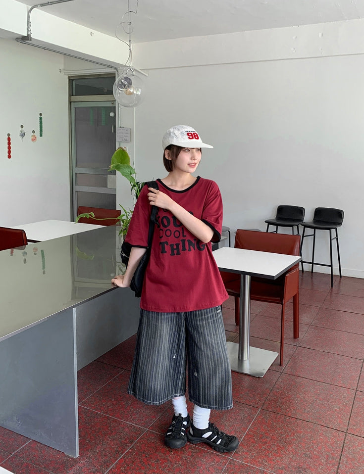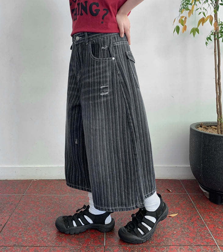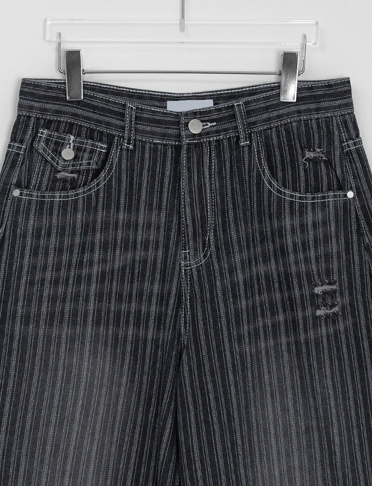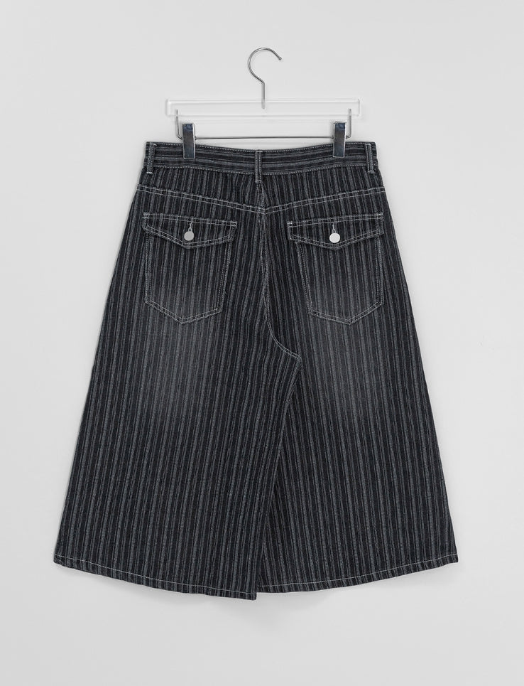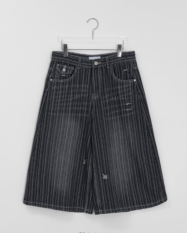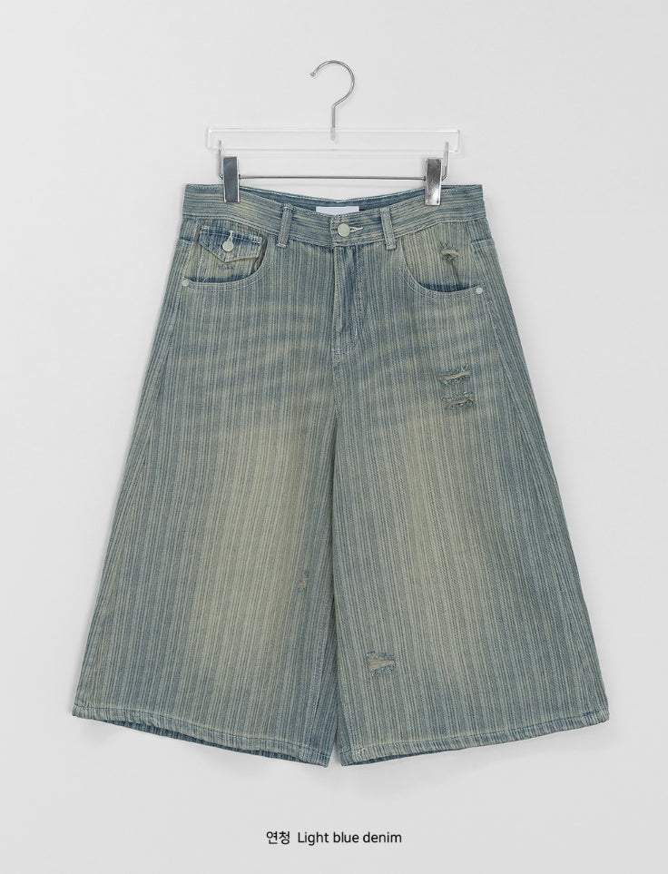 [Unisex] Dern Stripe Washing Denim Bermuda Pants