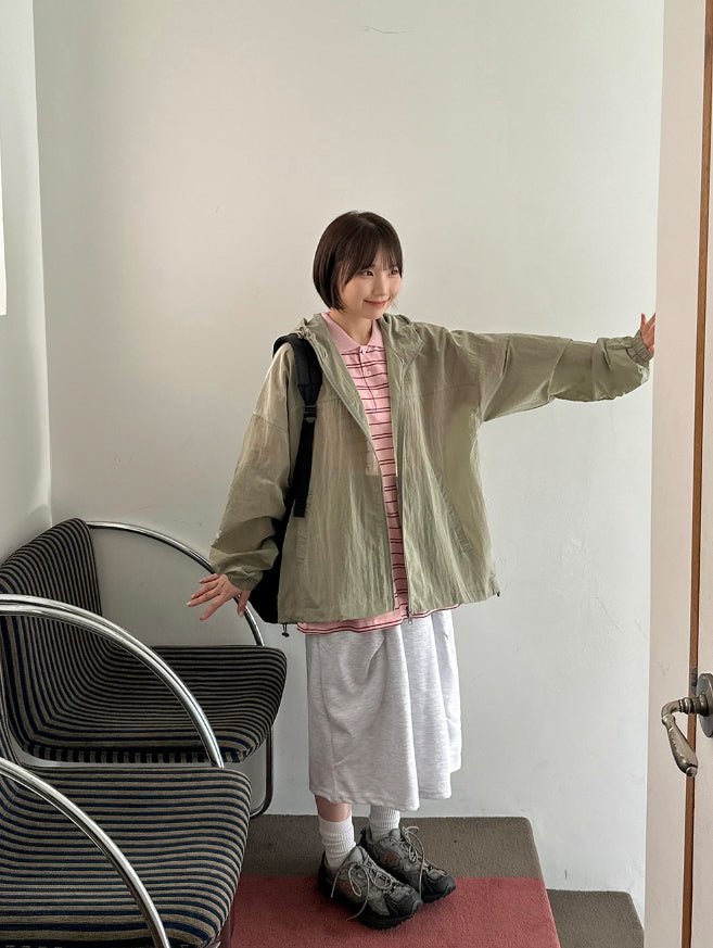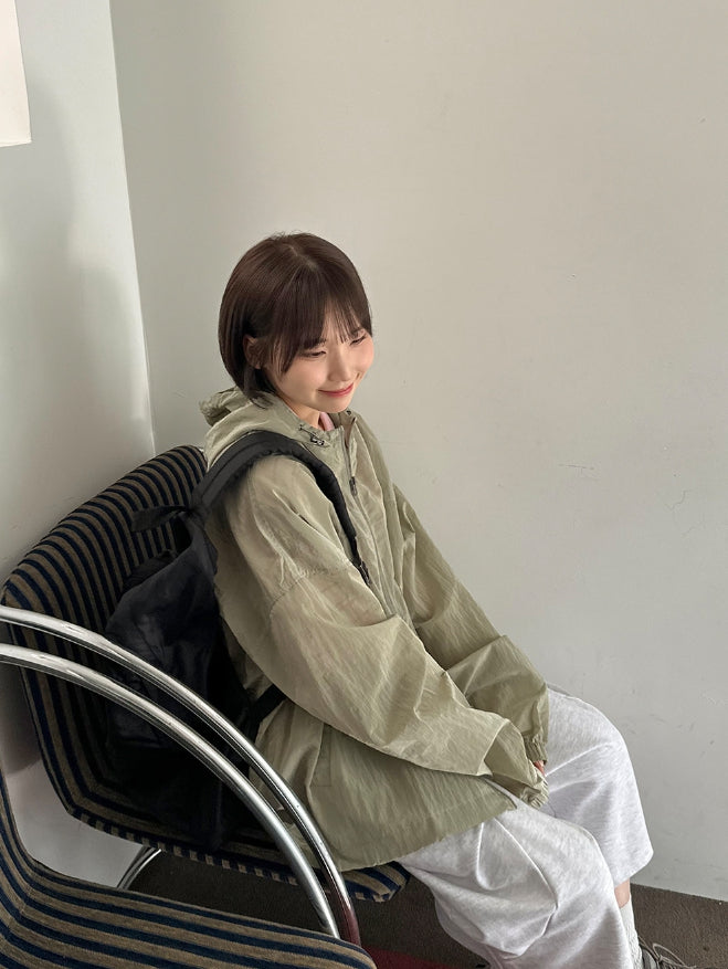 [unisex] Duque Summer Nylon Hood Over Wind Jumper