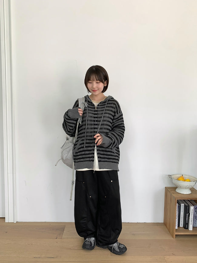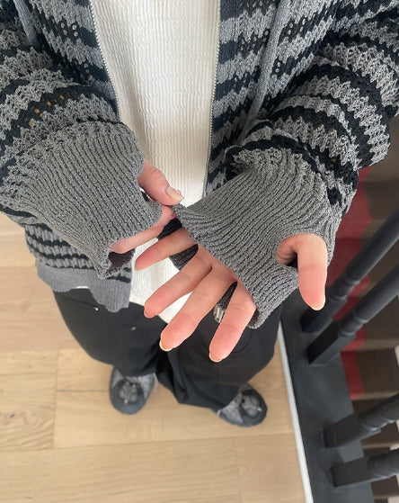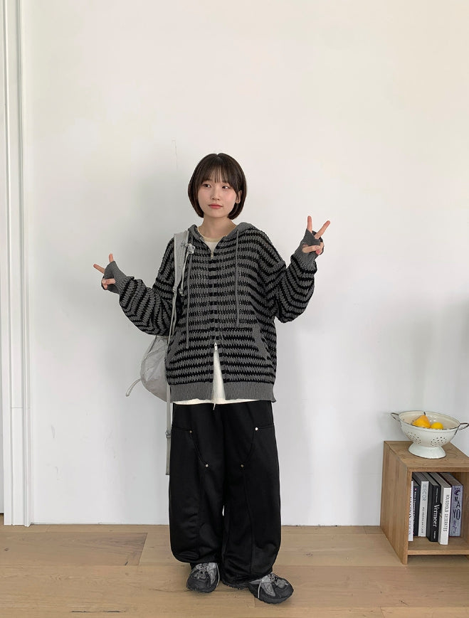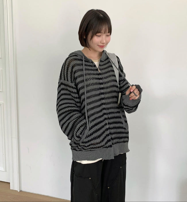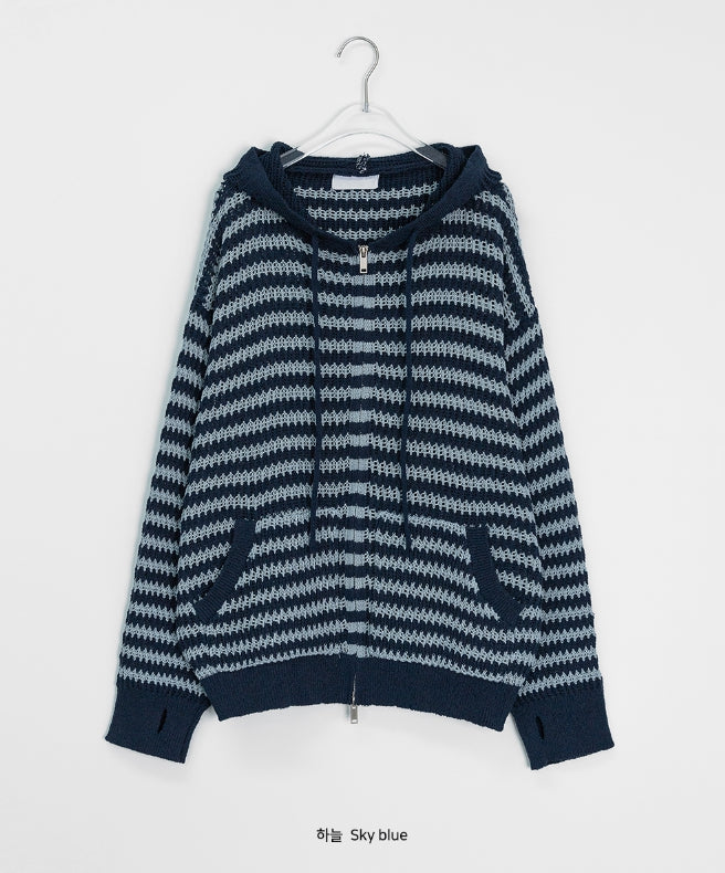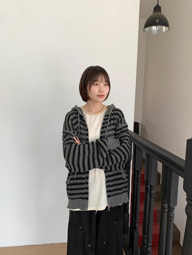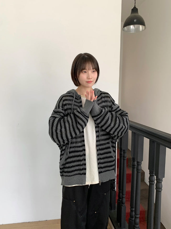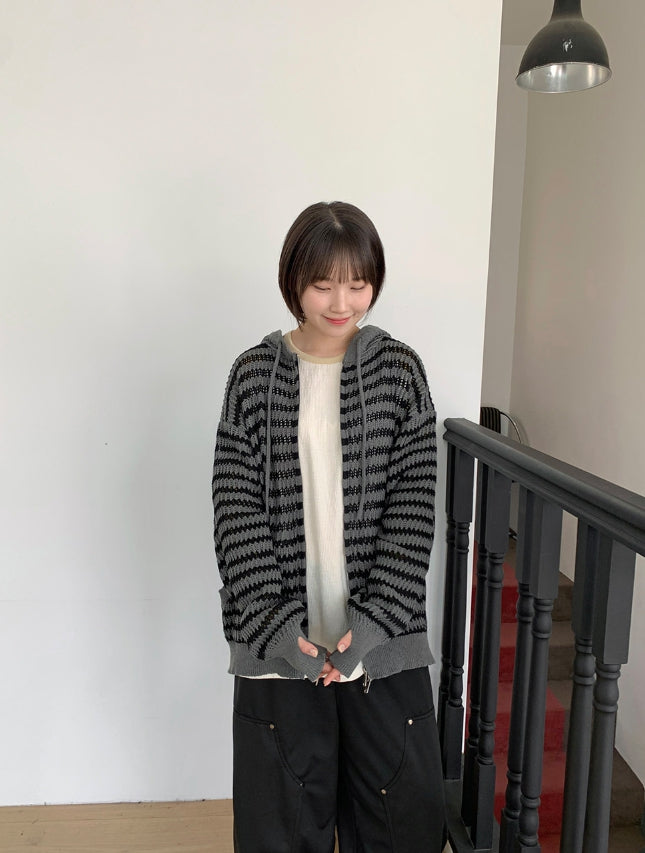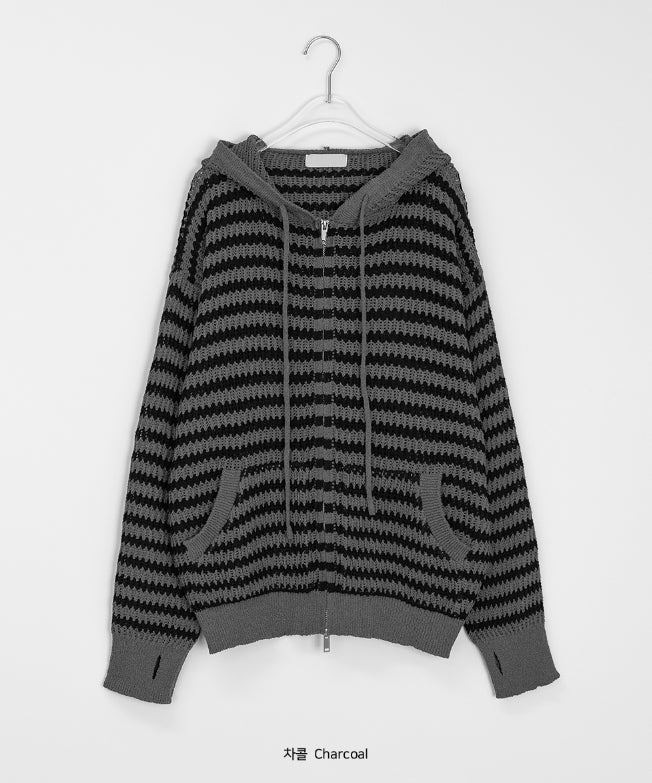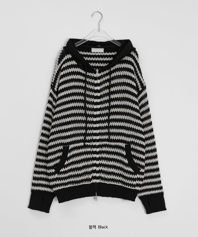 [unisex] Endel Stripe Net Hood Zip-up