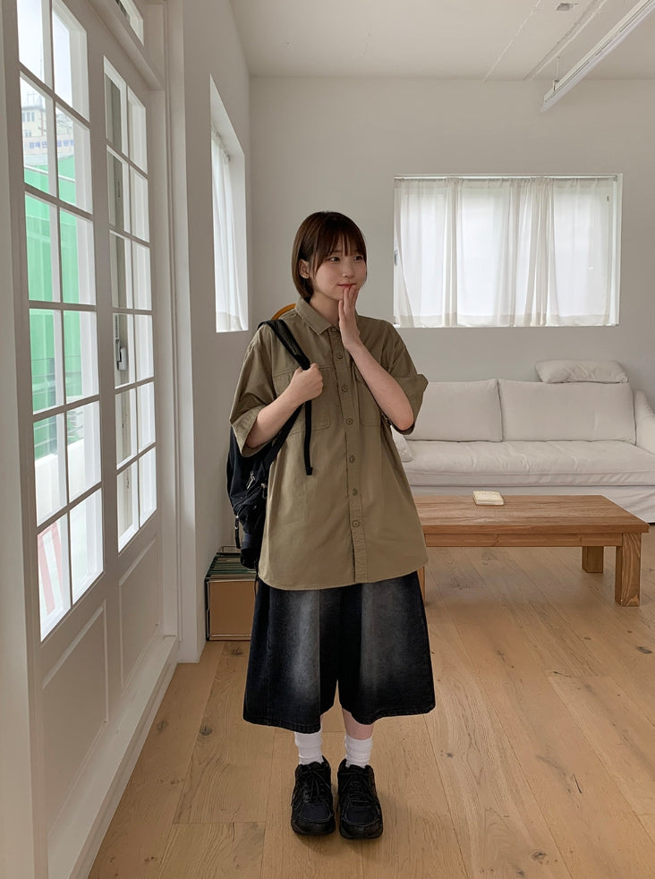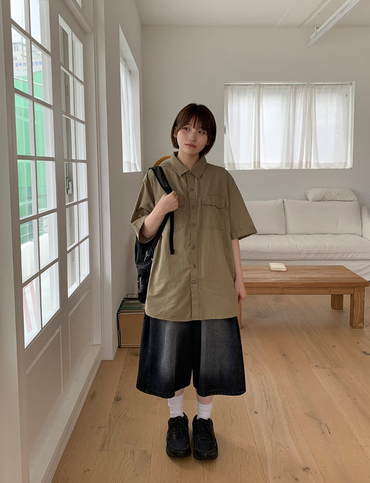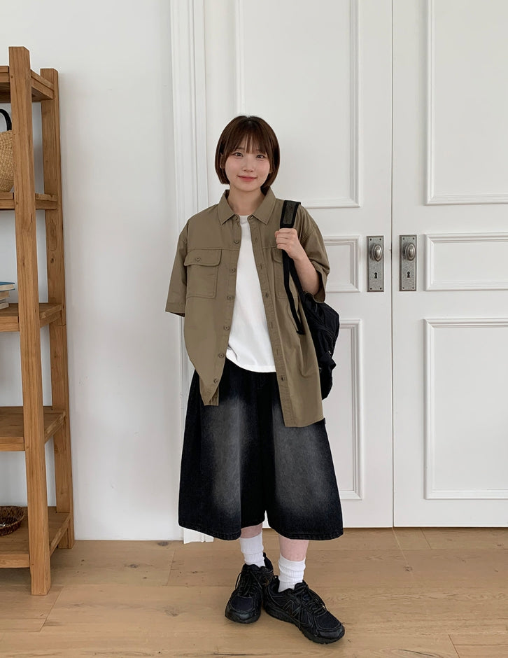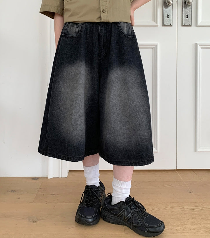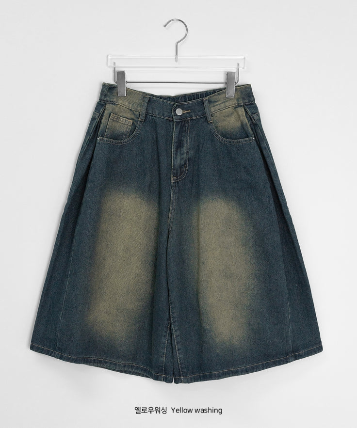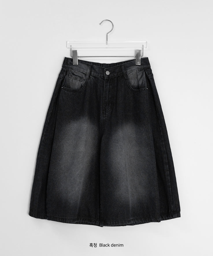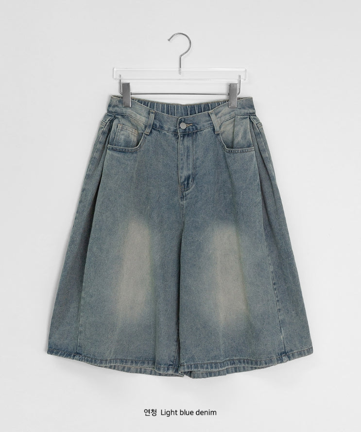 [Unisex] Gelgo Pintuck Washing Denim Bermuda Pants