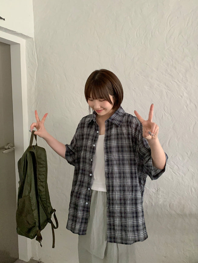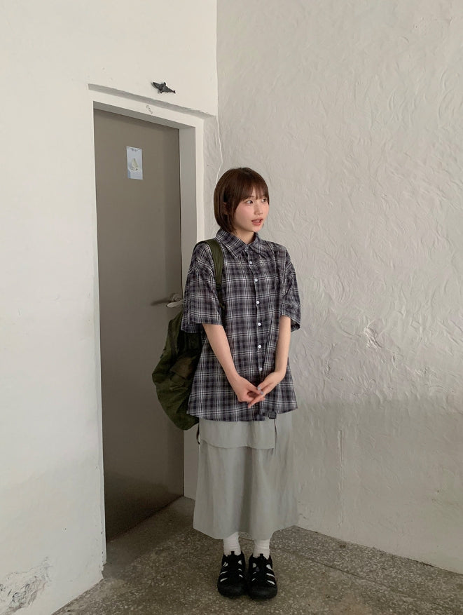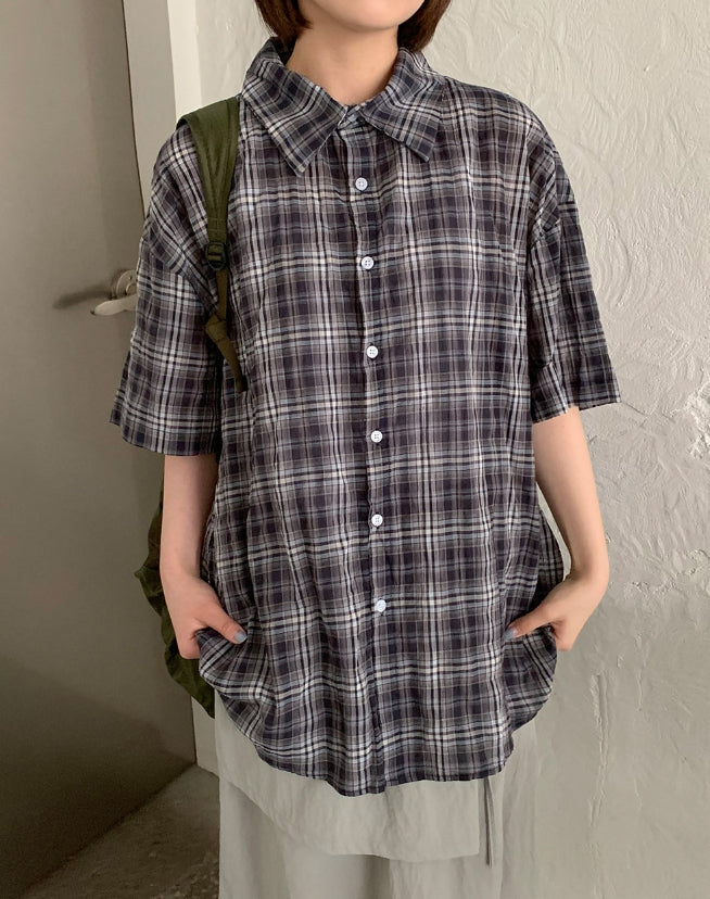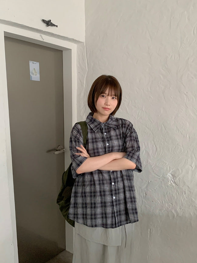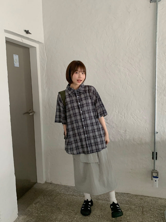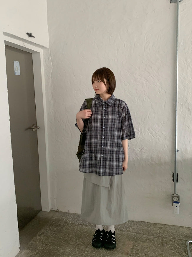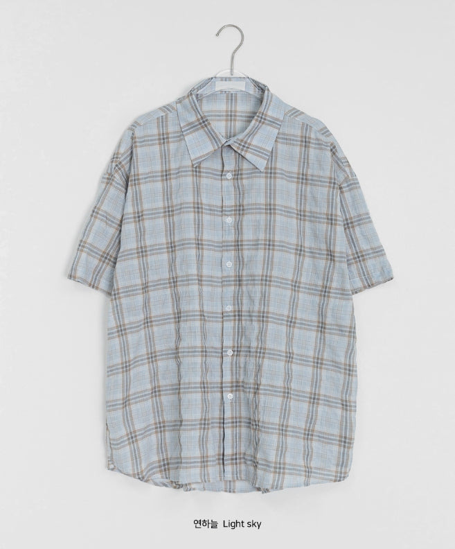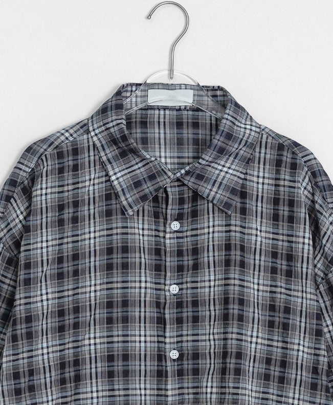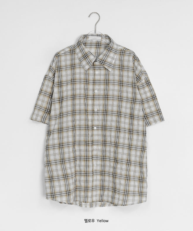 [unisex] Gotelli Linen Check Over Short Sleeve Shirt