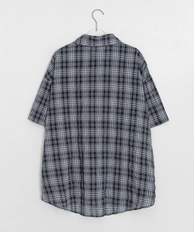 [男女兼用]ゴテリリネンチェックオーバー半袖シャツ