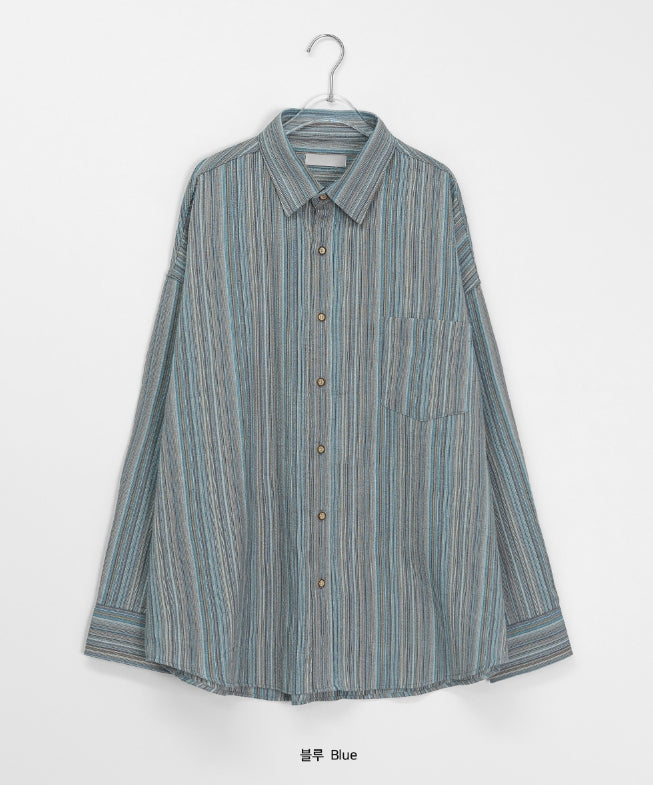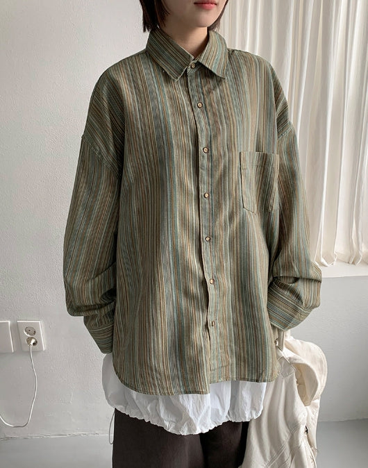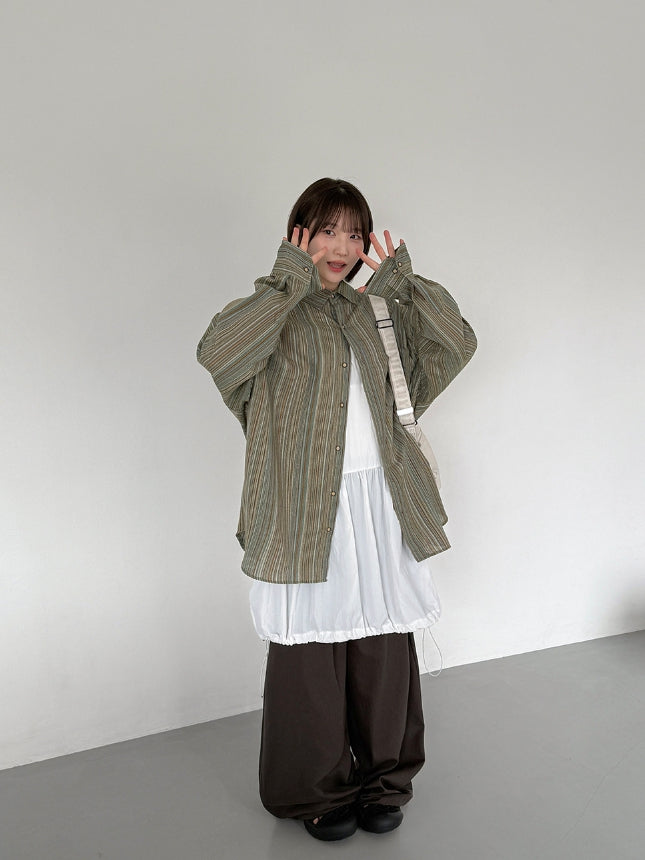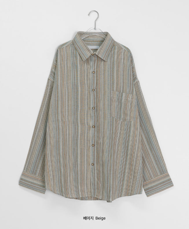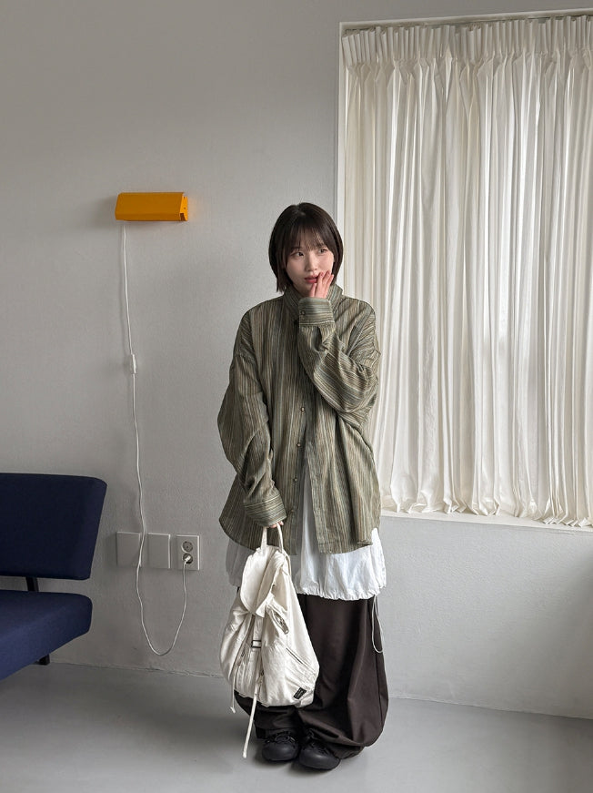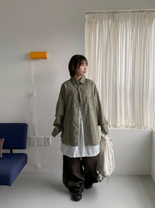 [男女兼用]ヘランビンテージストライプオーバーシャツ