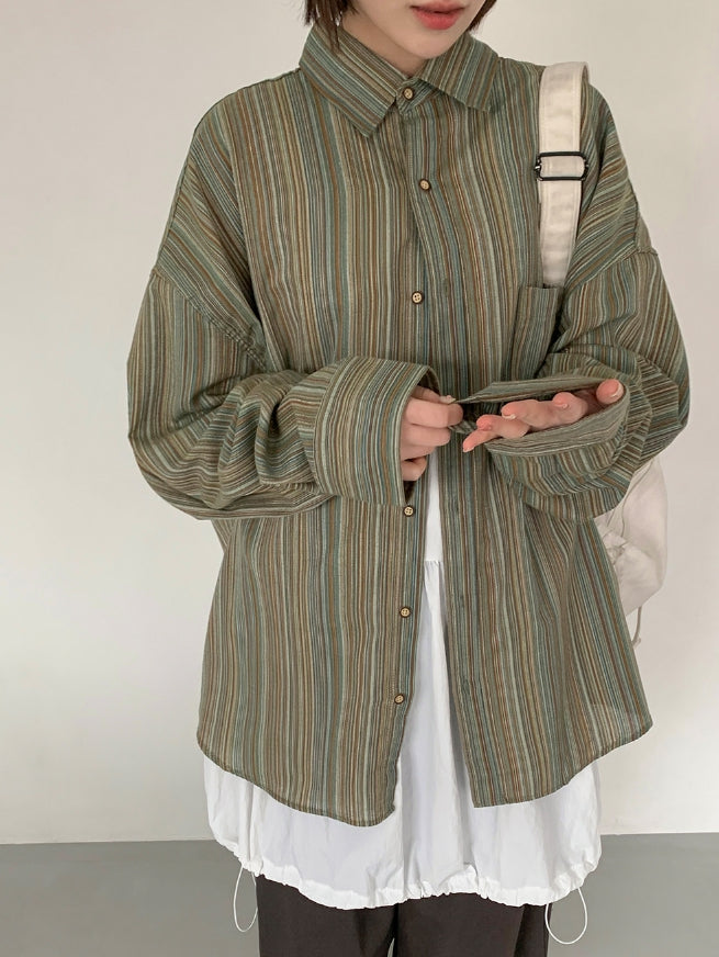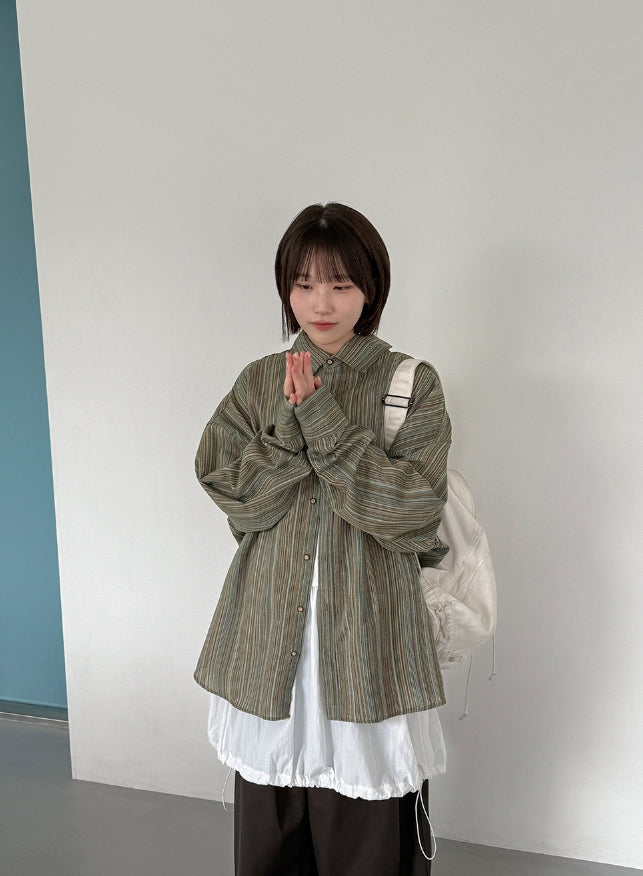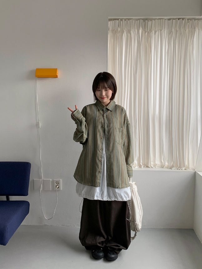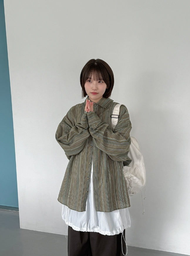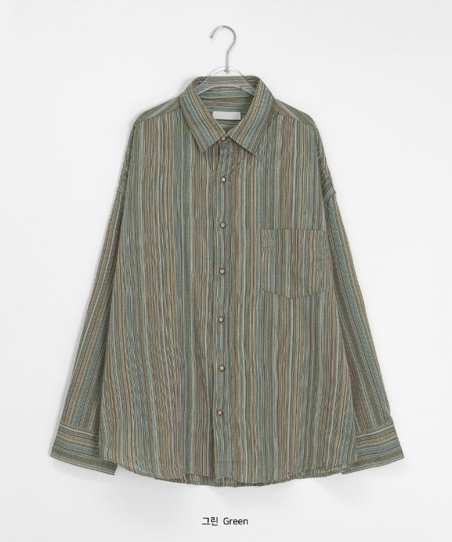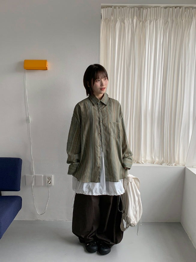 [男女兼用]ヘランビンテージストライプオーバーシャツ