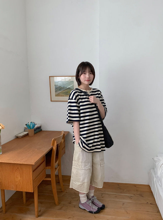 [unisex] Hemda Stripe Over Short Sleeve Tee