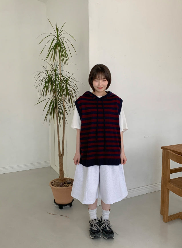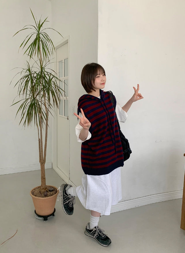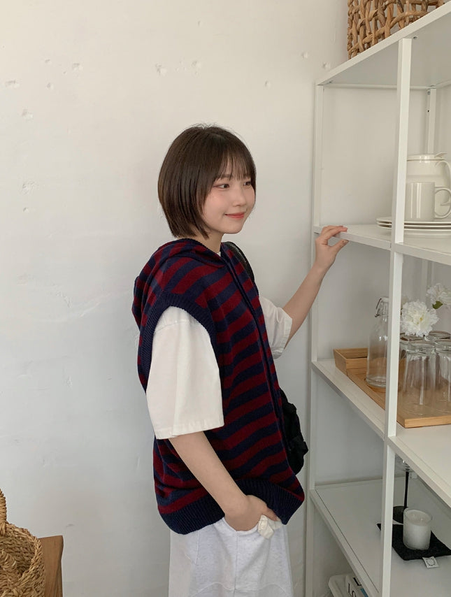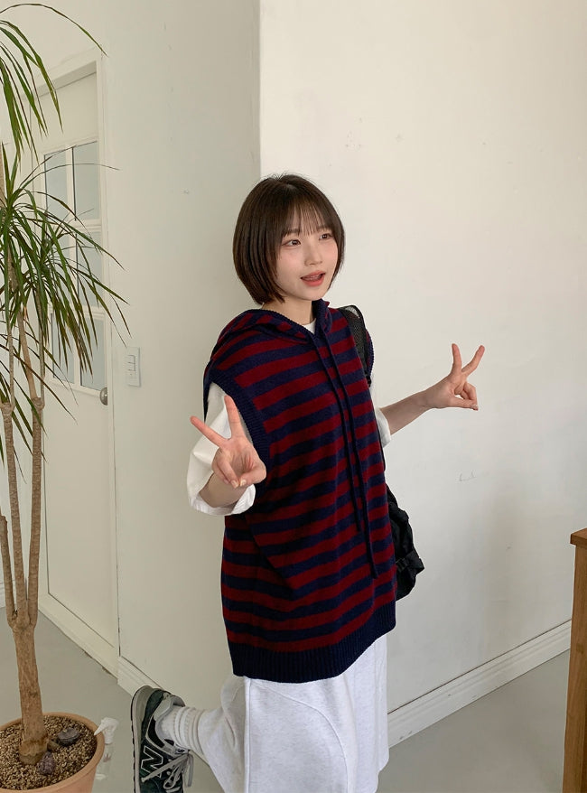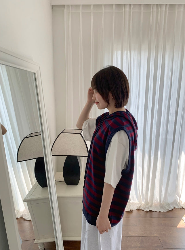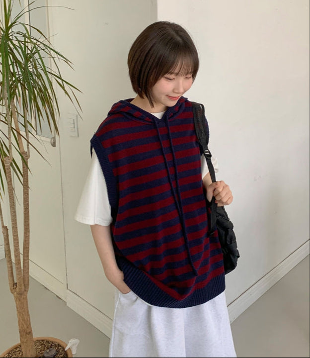 [男女兼用]ヘンケンボーダーフードニットベスト