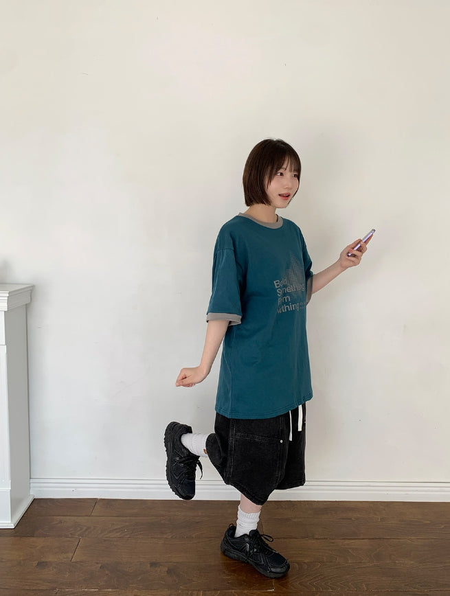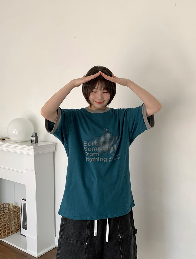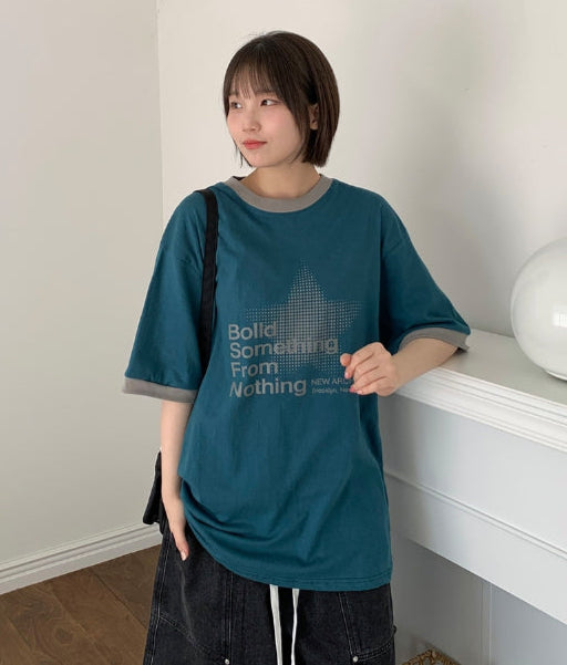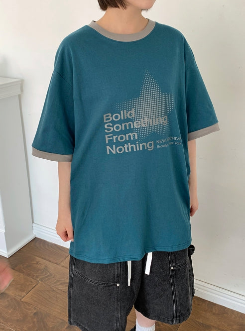 [unisex] Heno Star Color Matching Over Short Sleeve T-Shirt
