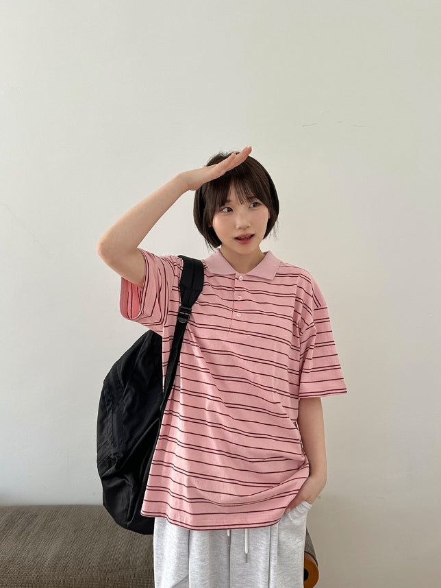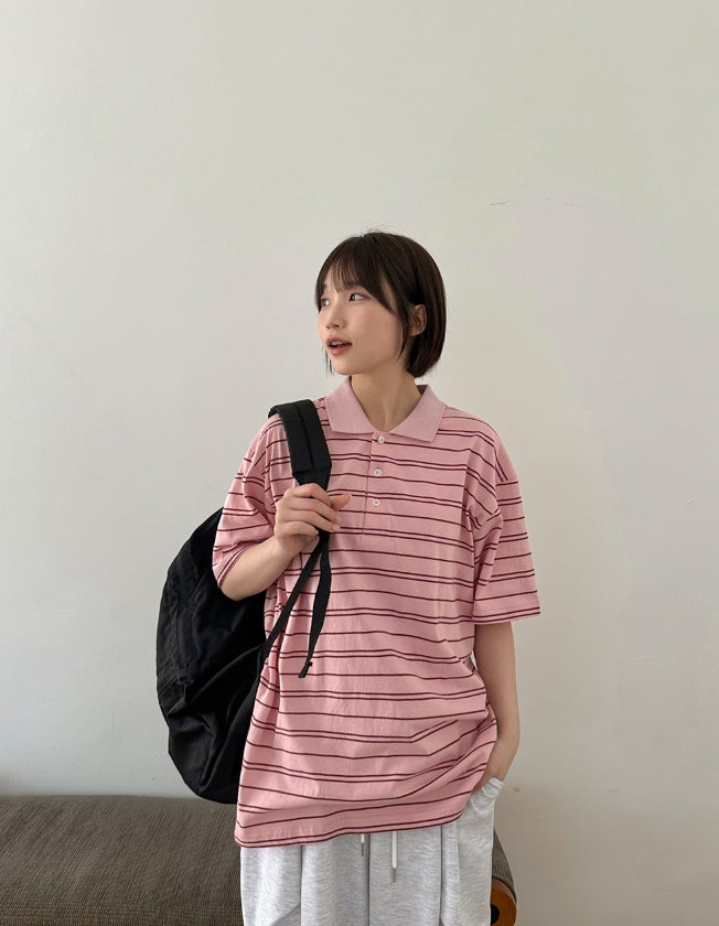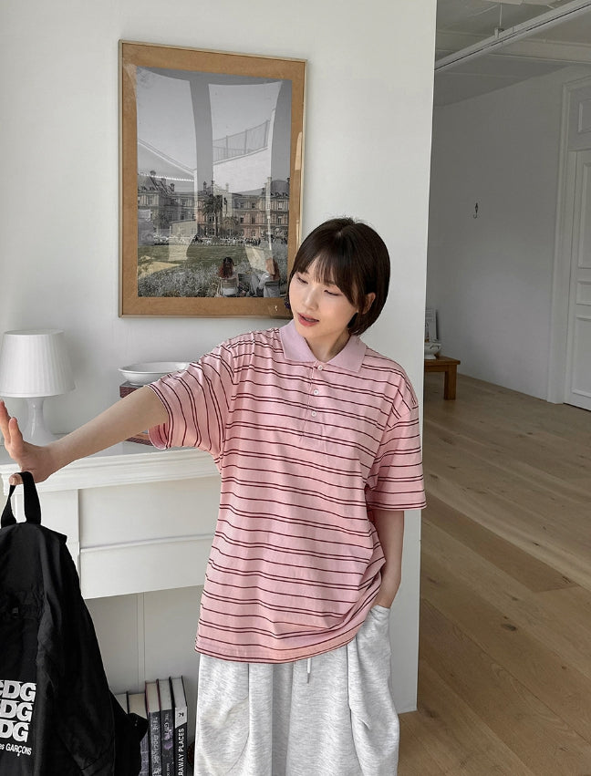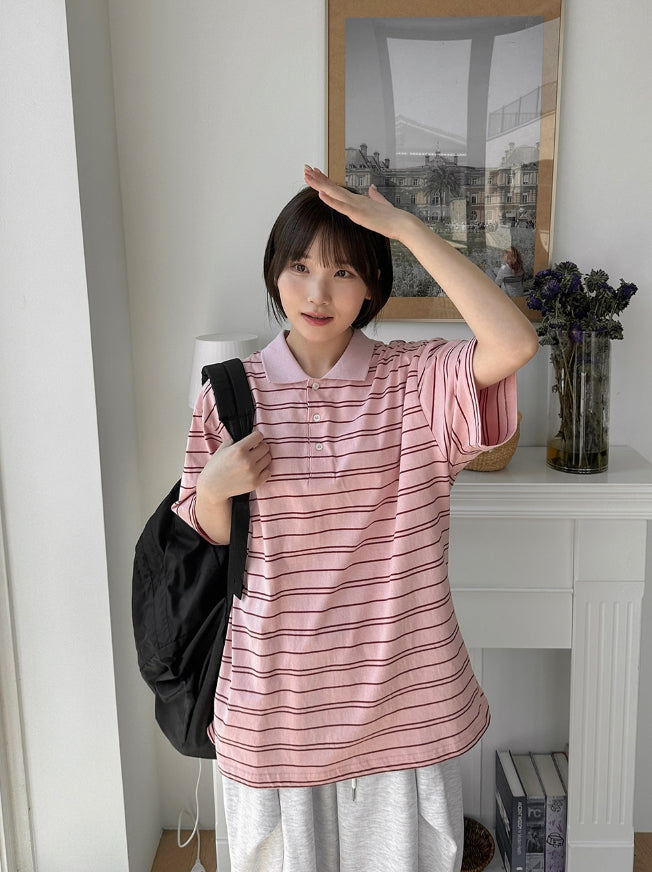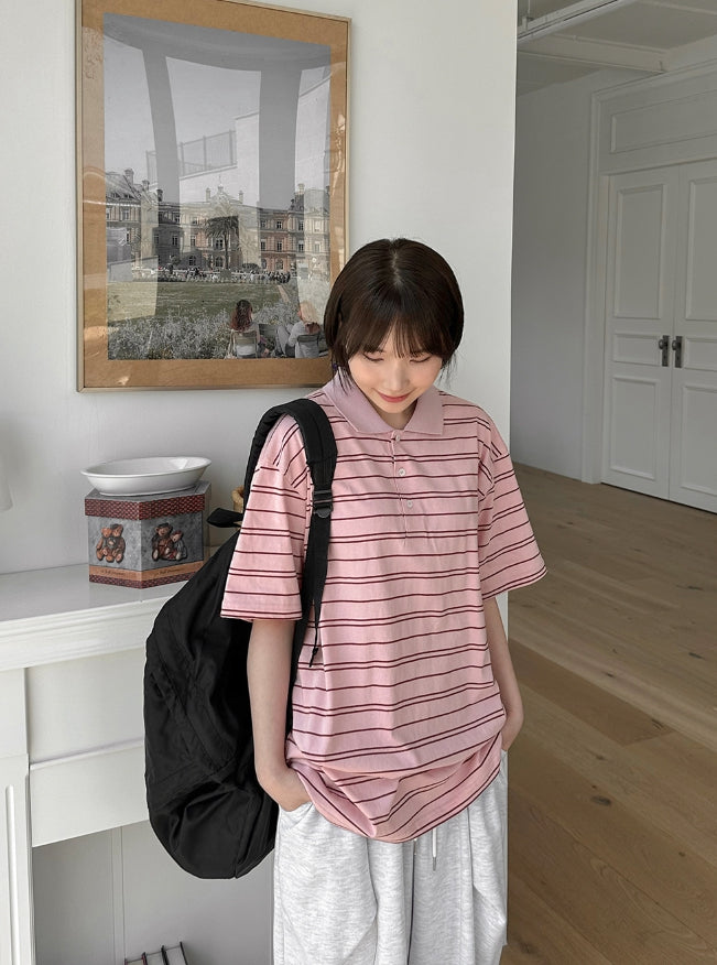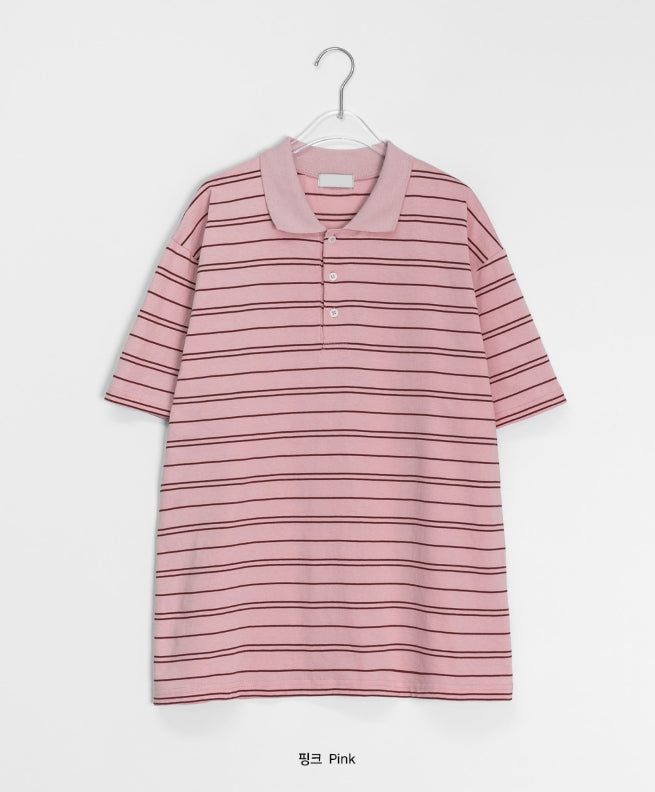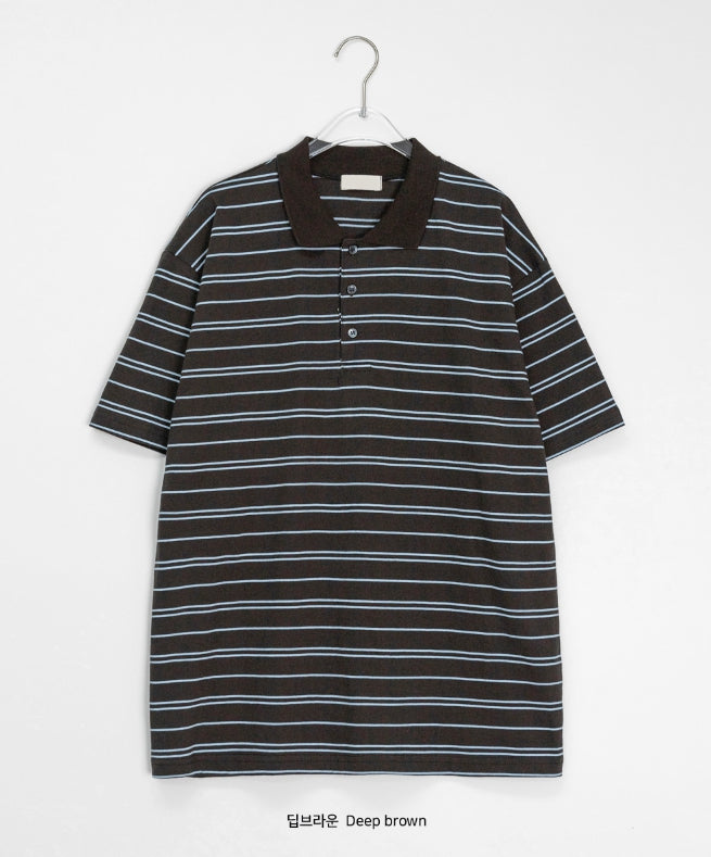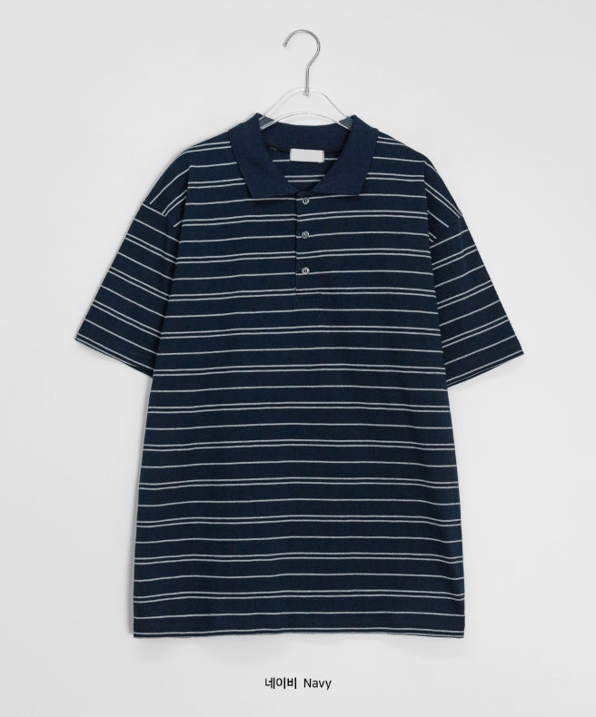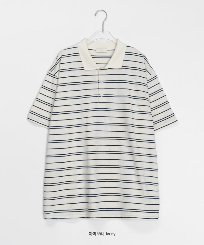 [unisex] Hillen Stripe Collar Short Sleeve Tee