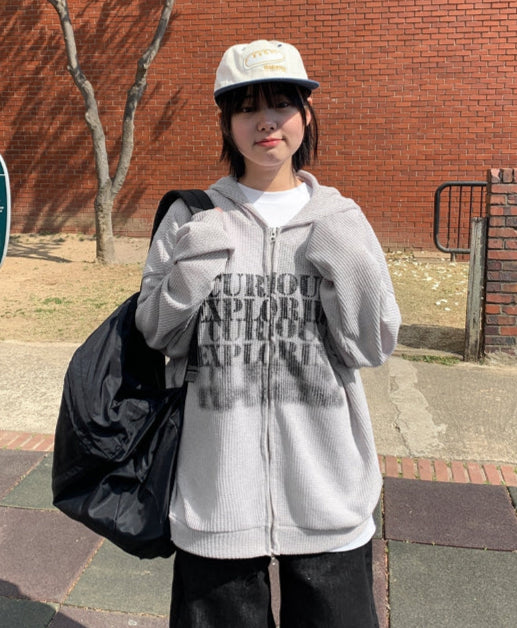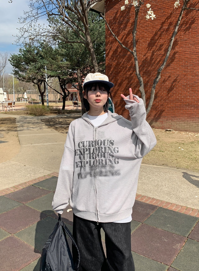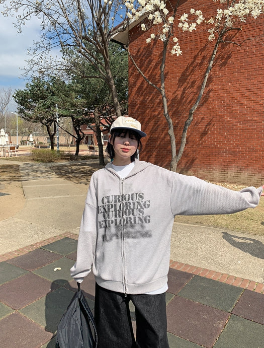 [unisex] Homgo Punching Over Hood Knit Zip-up