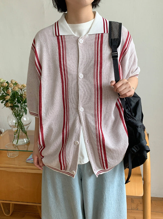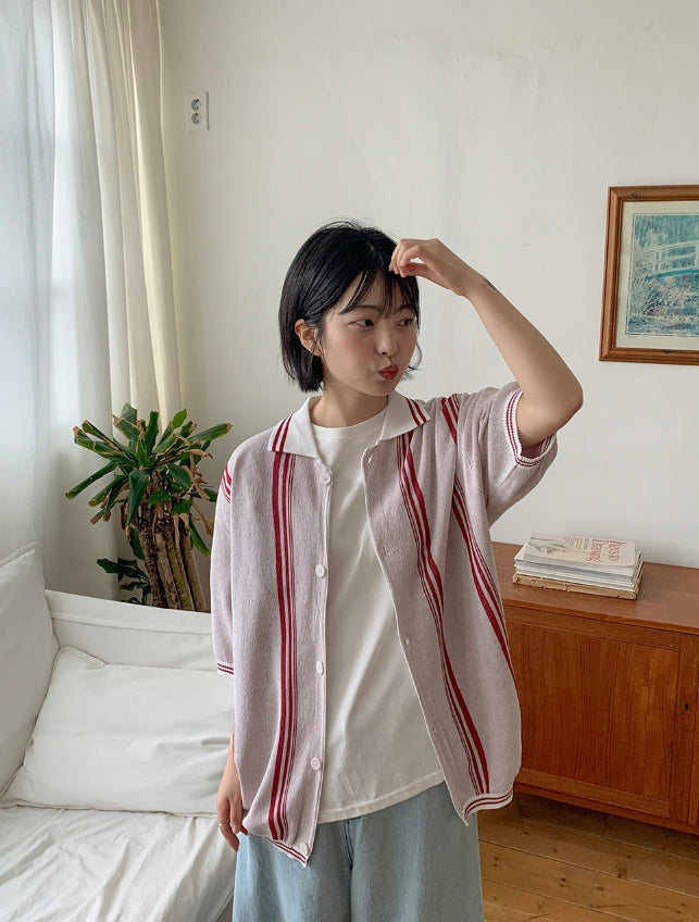 [unisex] Hookend Summer Stripe Short Sleeve Cardigan