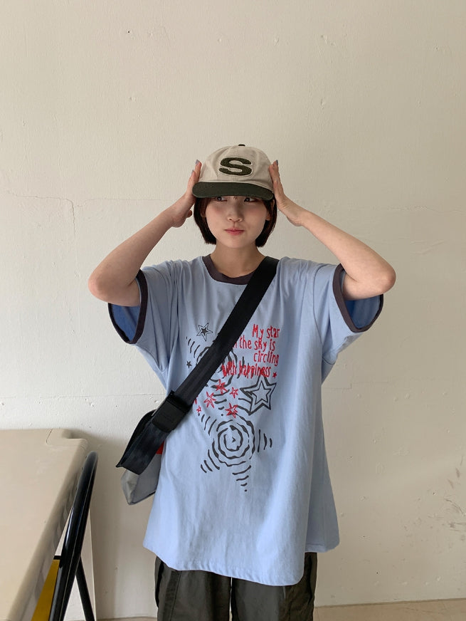 [unisex] Huben Printing Color Matching Ringer Short Sleeve T-shirt