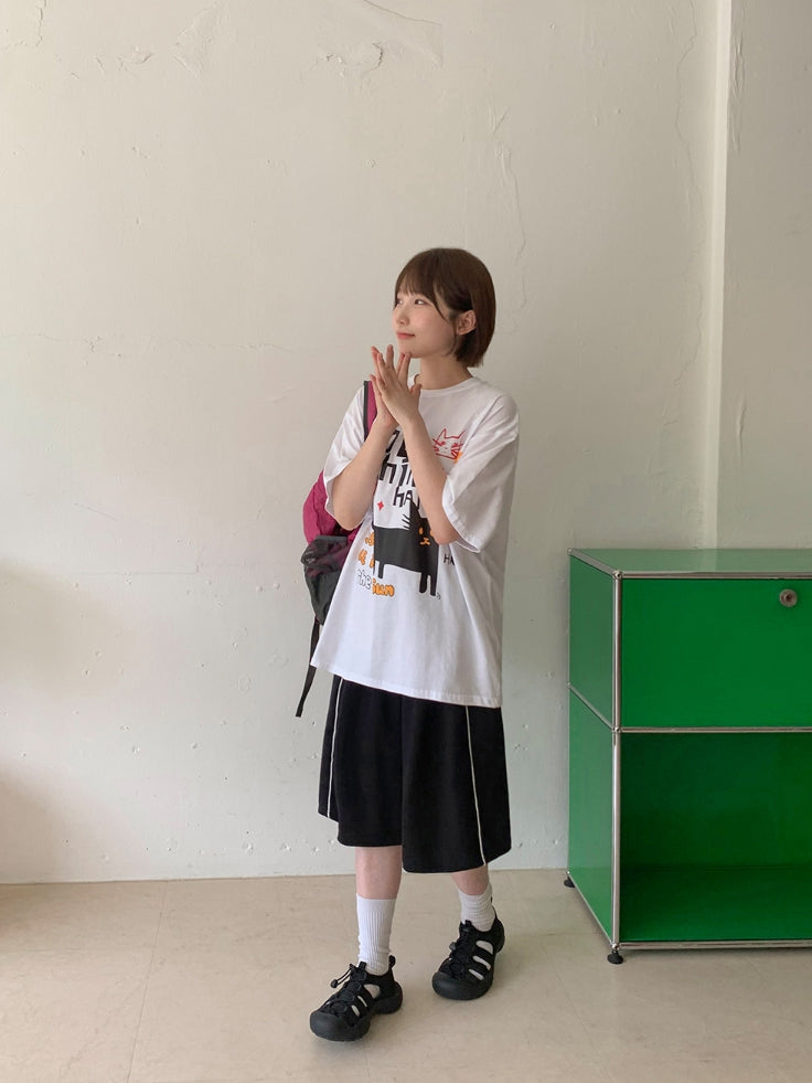-ONE SIZE (ウエスト(ゴム)68-92 ヒップ119 股上38 股下24 もも周り85 裾周り86 総丈62)