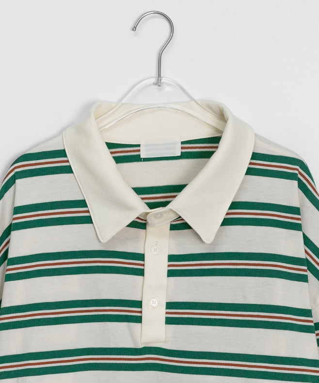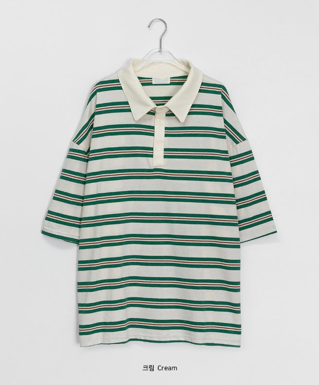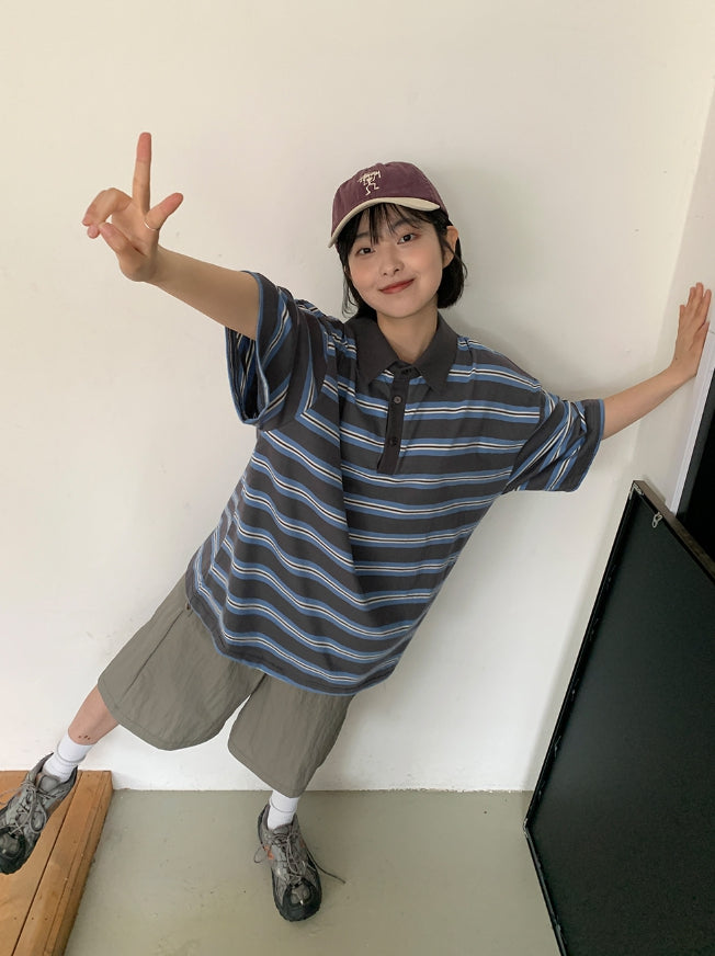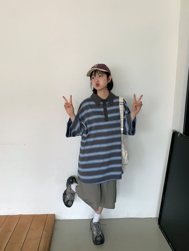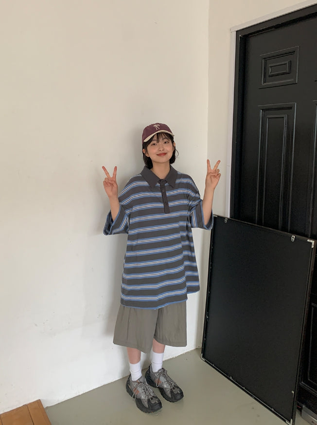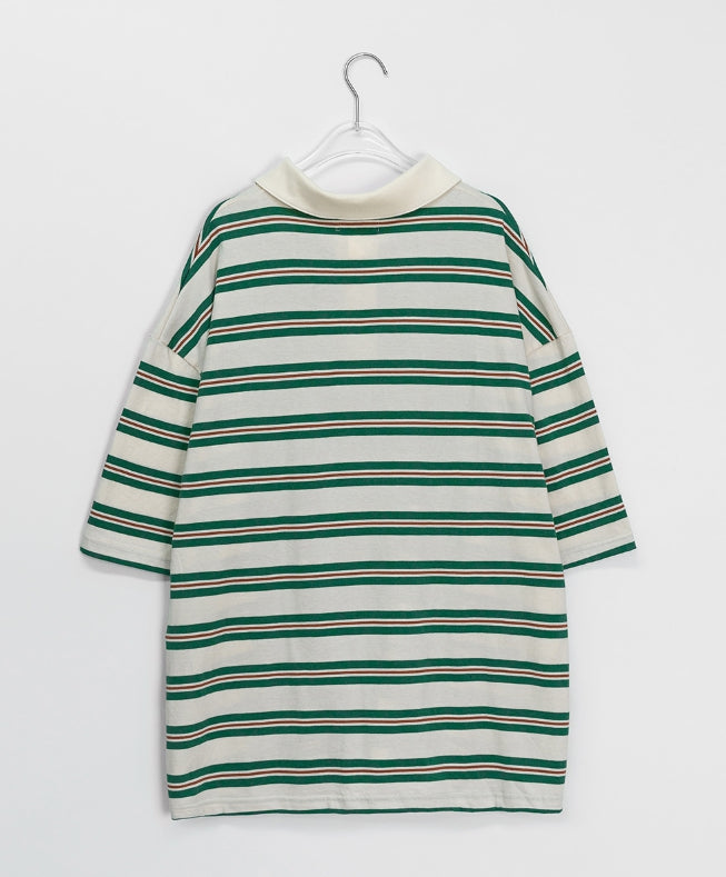 [男女兼用]ヒュデンドボーダー襟付きオーバー半袖Tシャツ