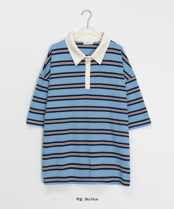 [unisex] Hudend Stripe Collar Over Short Sleeve Tee
