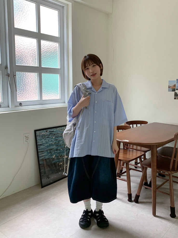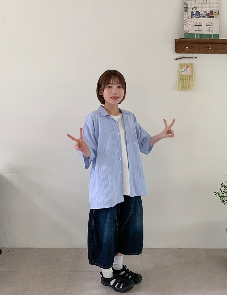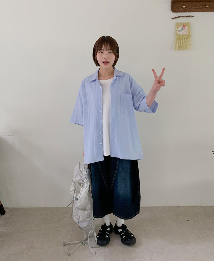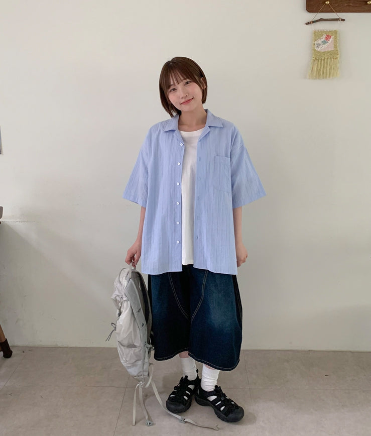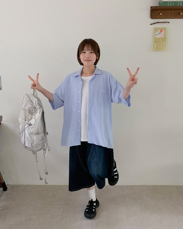 [unisex] Jint Seersucker Over Short Sleeve Shirt