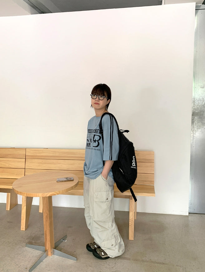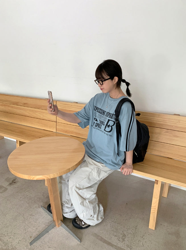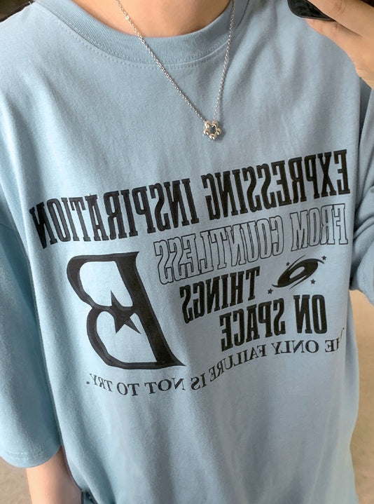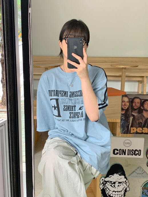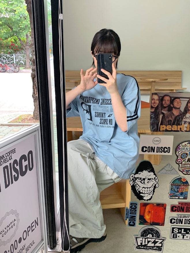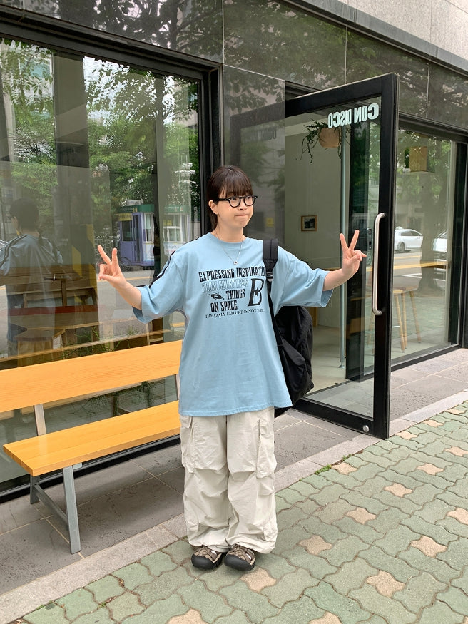 [男女兼用]ジゼントラックカラープリントオーバー半袖Tシャツ
