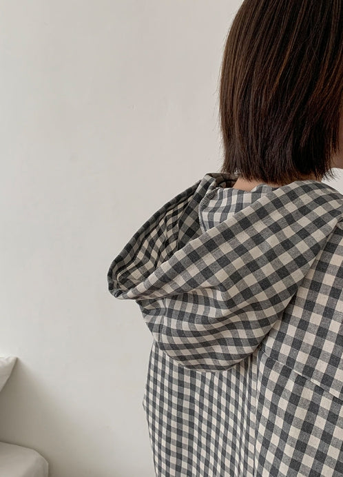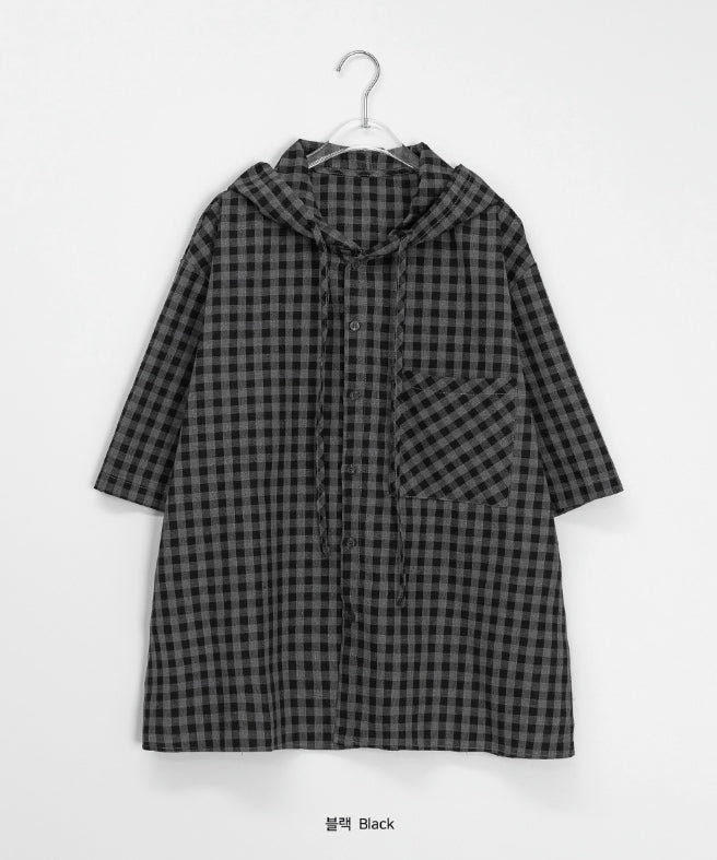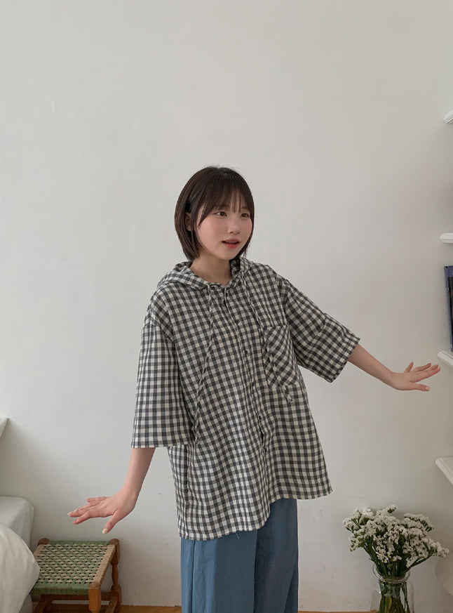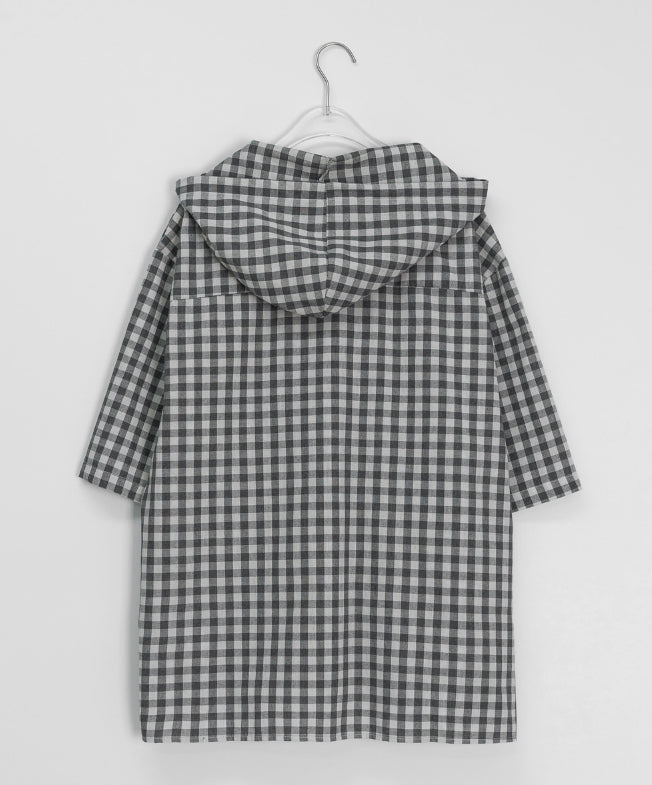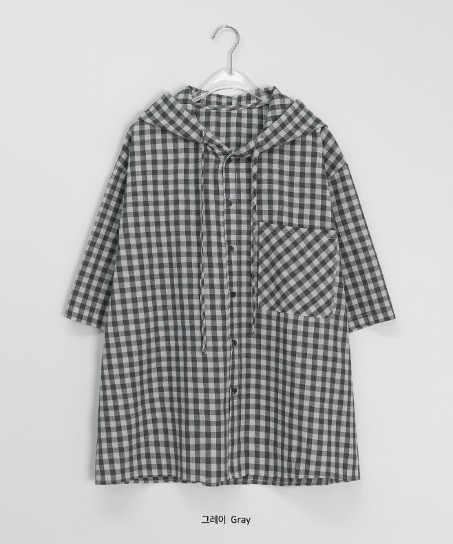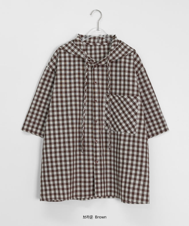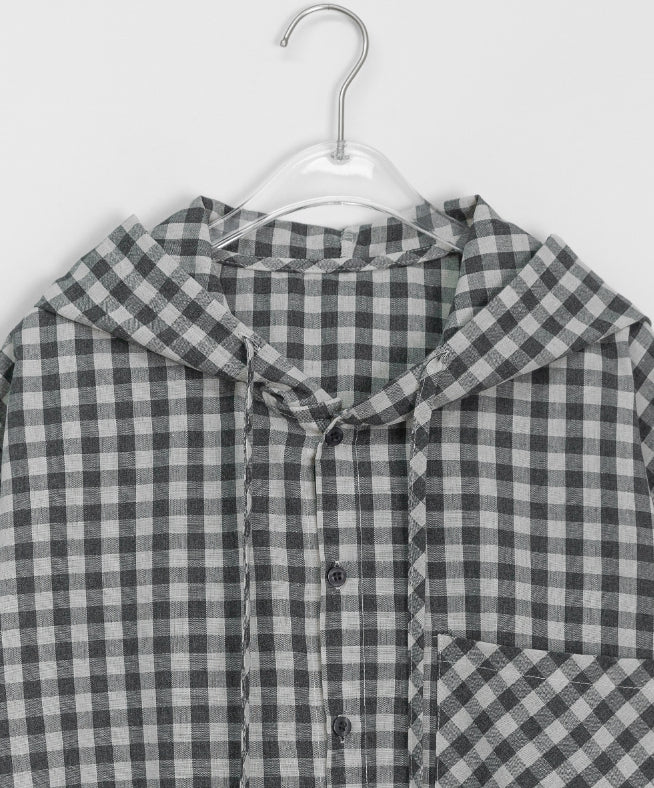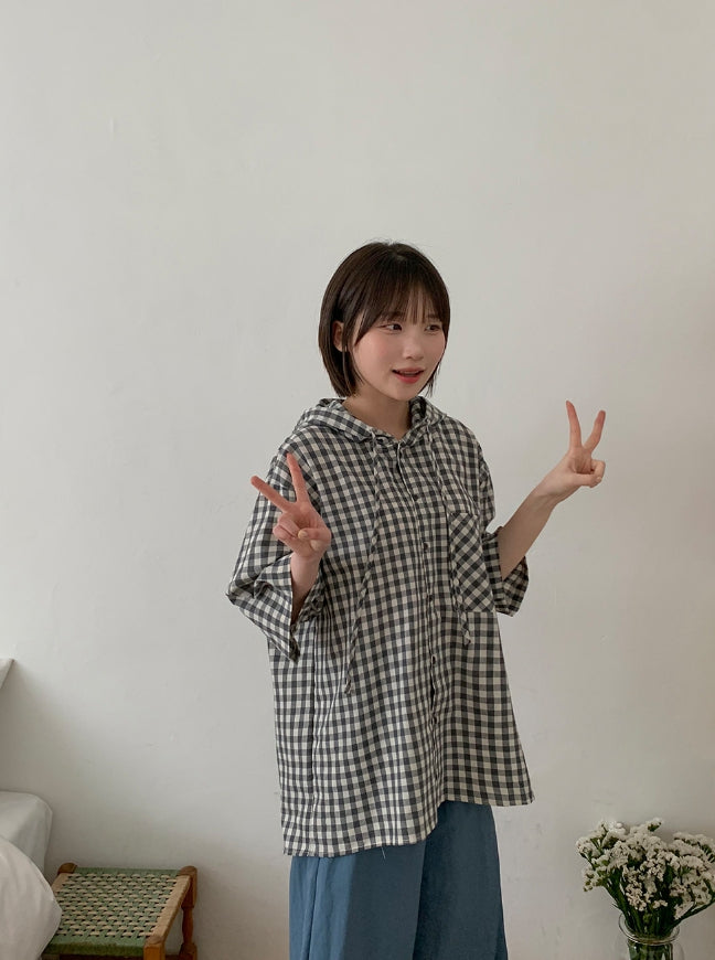 [男女兼用]カンビリチェックオーバーフード半袖シャツ