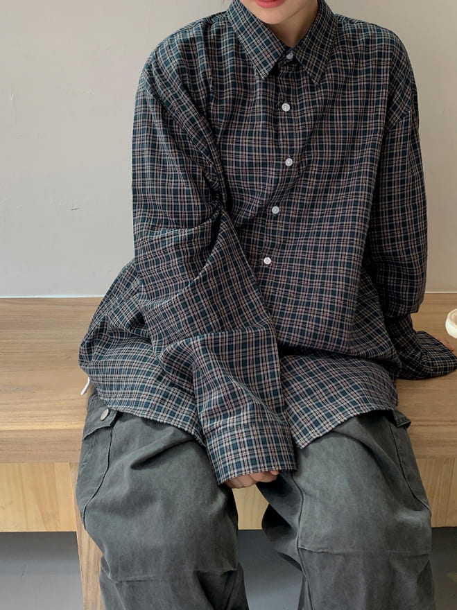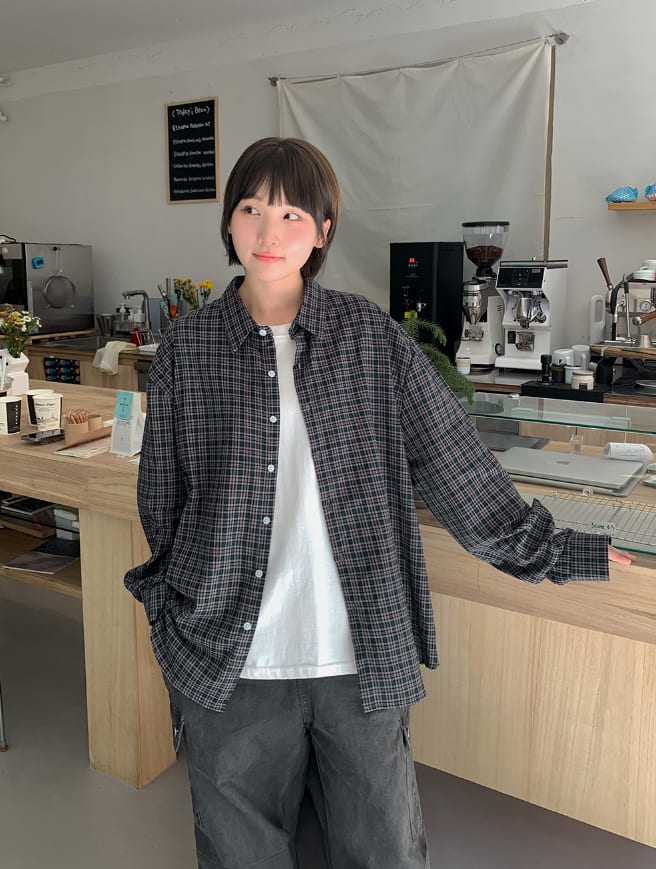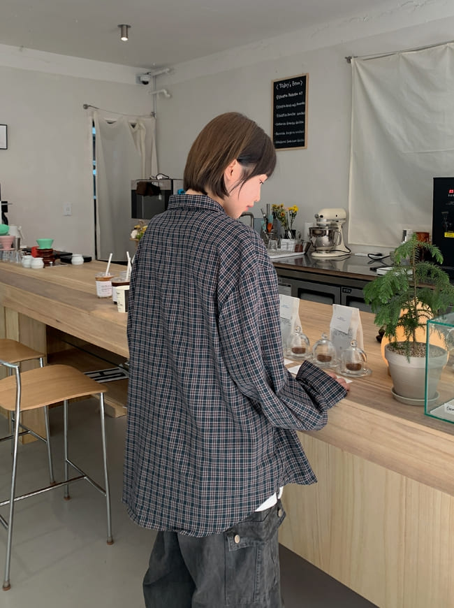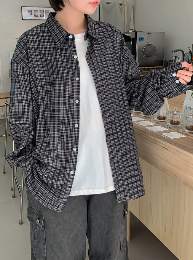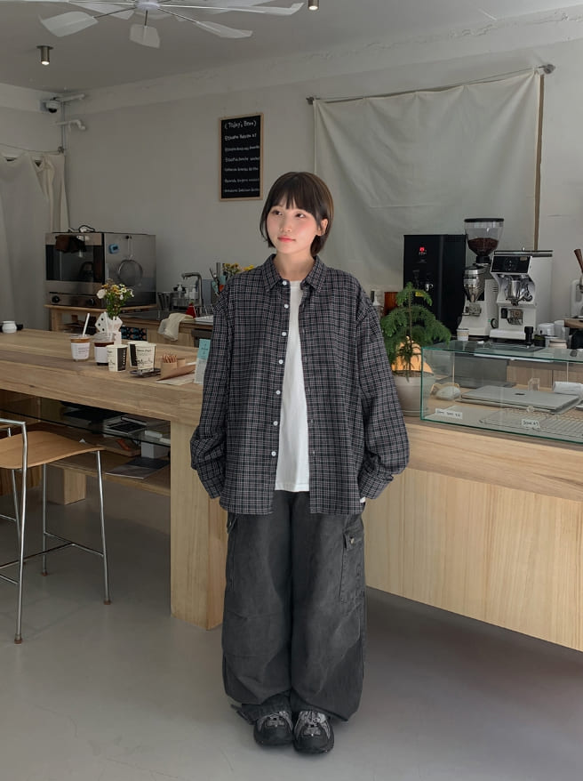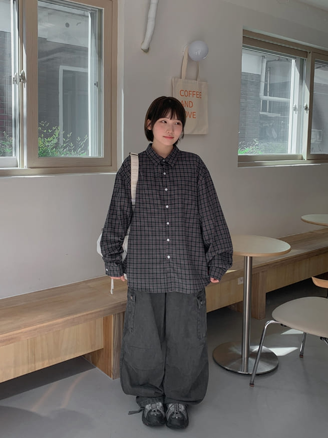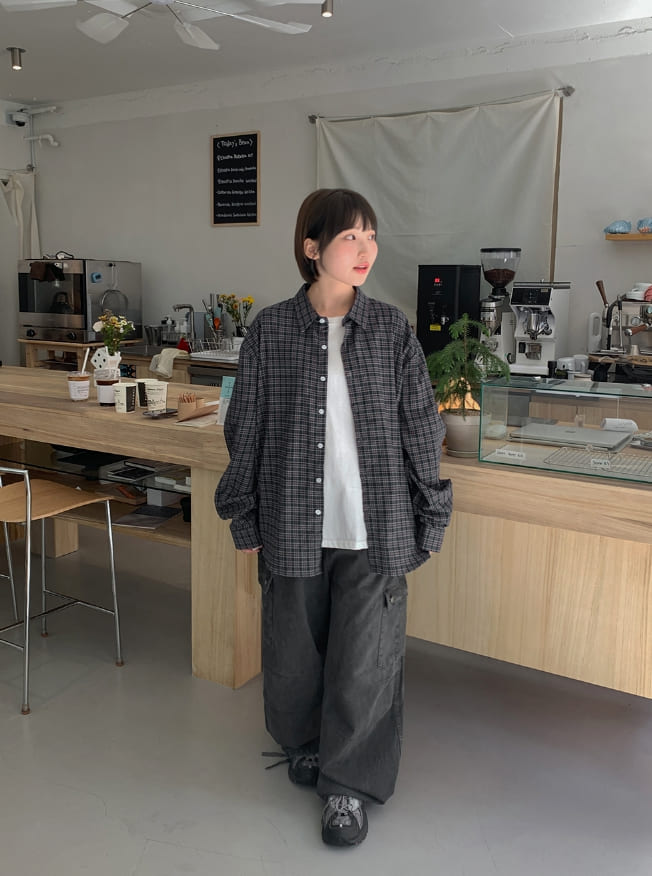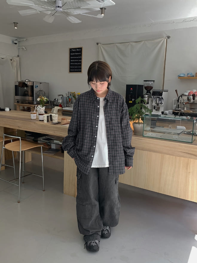 [unisex] Kurohi Check Over Long Sleeve Shirt
