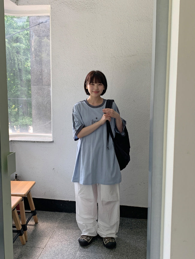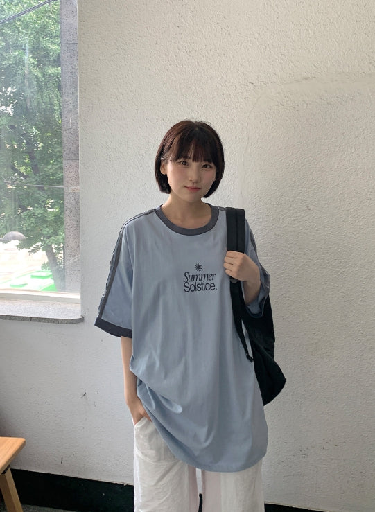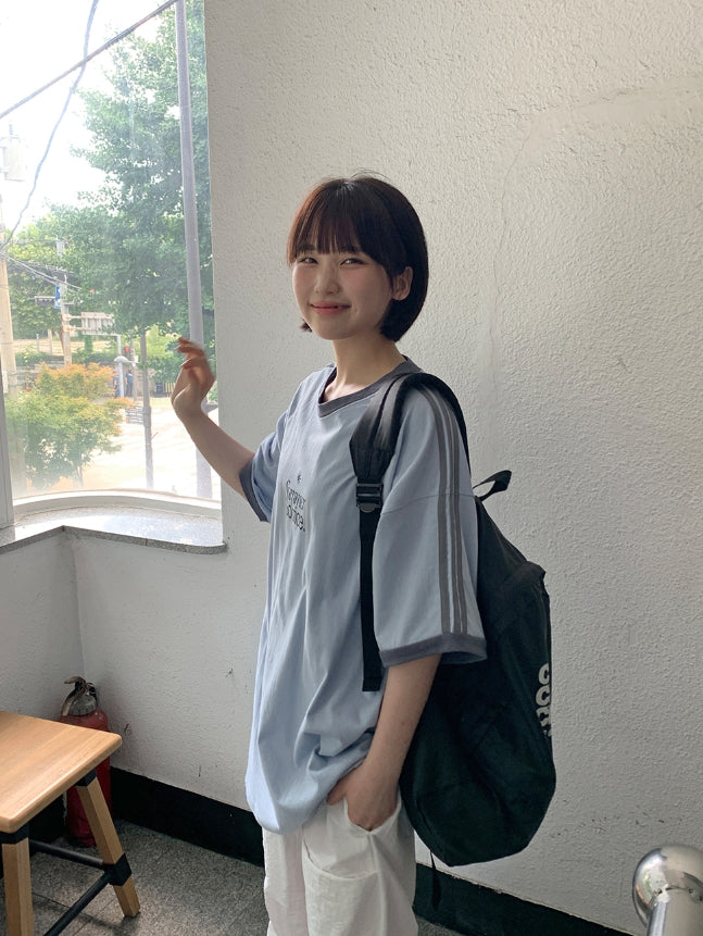 [男女兼用]ランキートラックカラーリンガーオーバー半袖Tシャツ