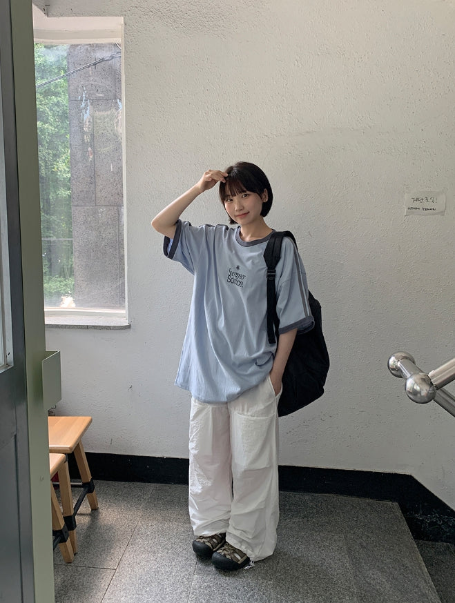 [unisex] Lunky Track Color Matching Ringer Over Short Sleeve Tee