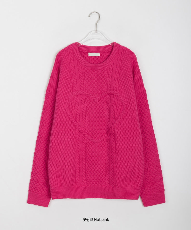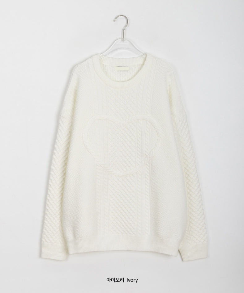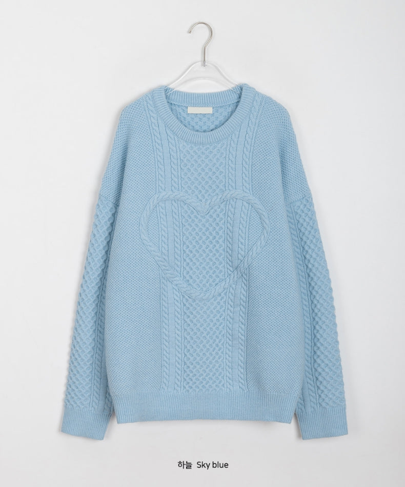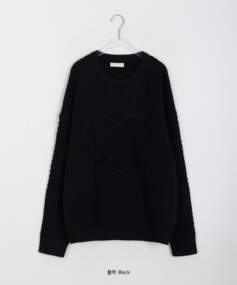 [男女兼用]マリンハートケーブルラウンドオーバーニット