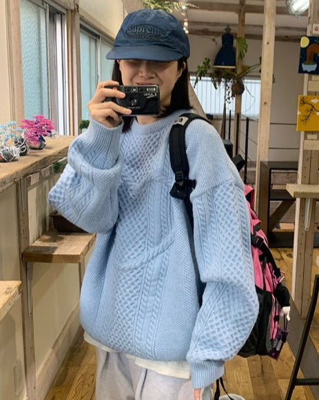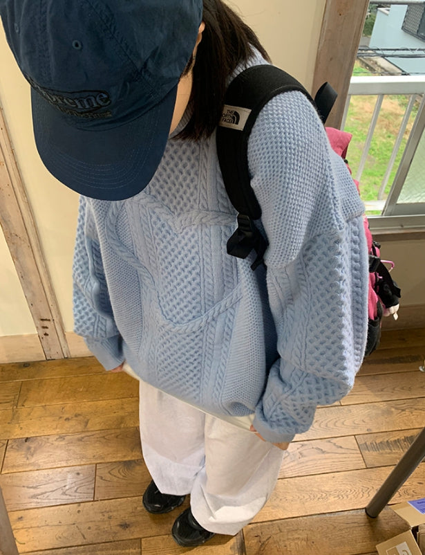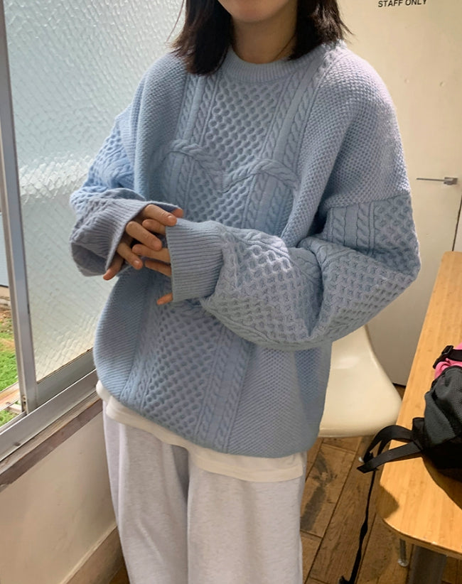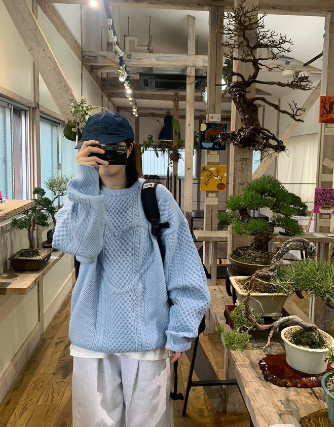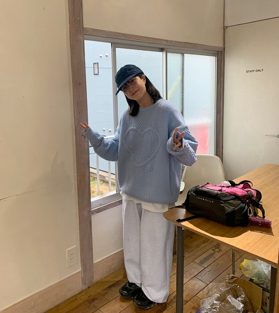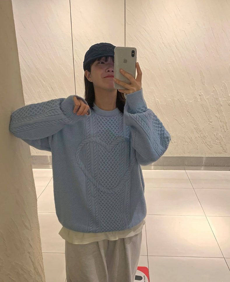 [男女兼用]マリンハートケーブルラウンドオーバーニット