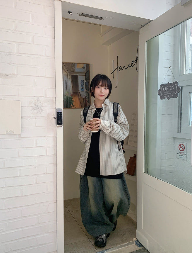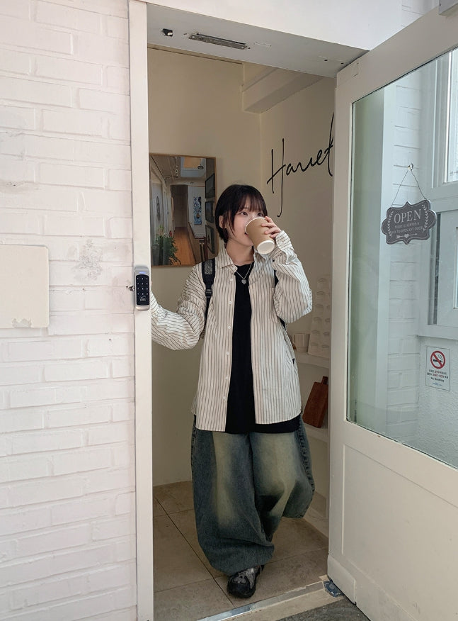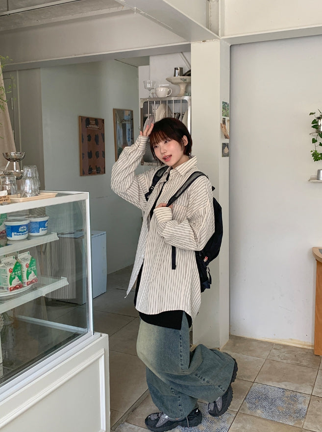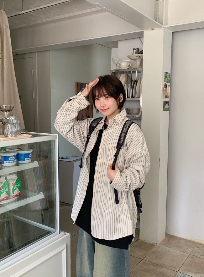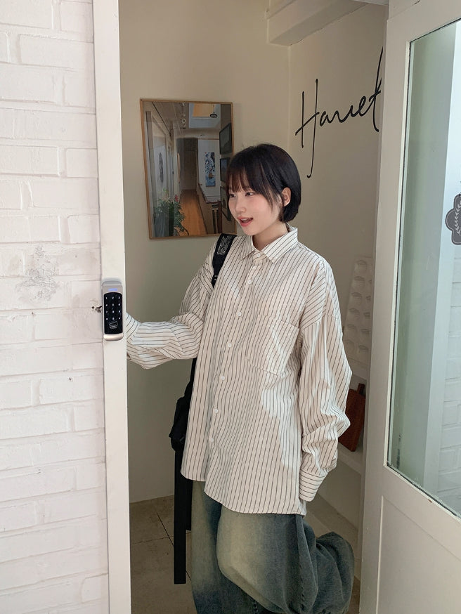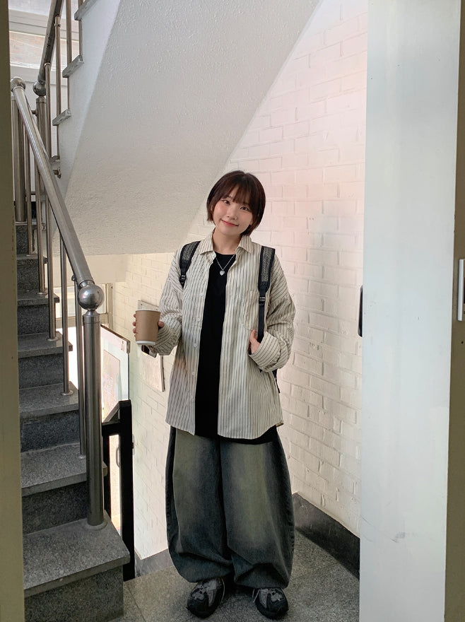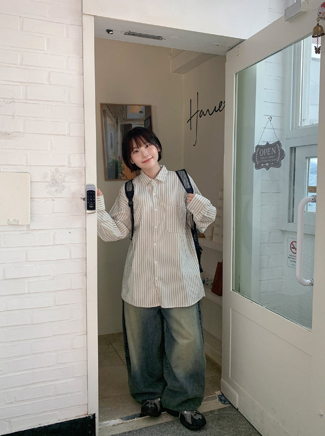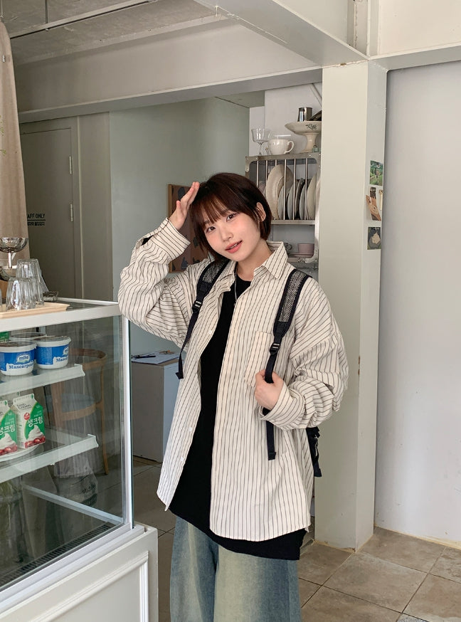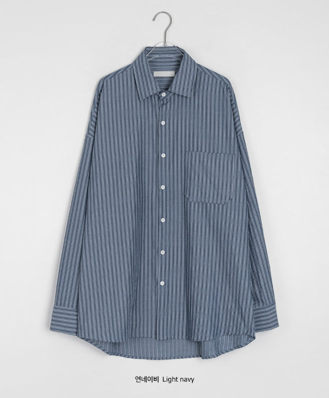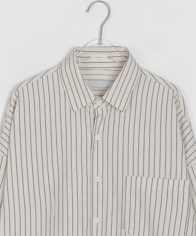 [unisex] Mashuko Stripe Pocket Over Shirt