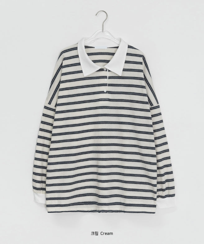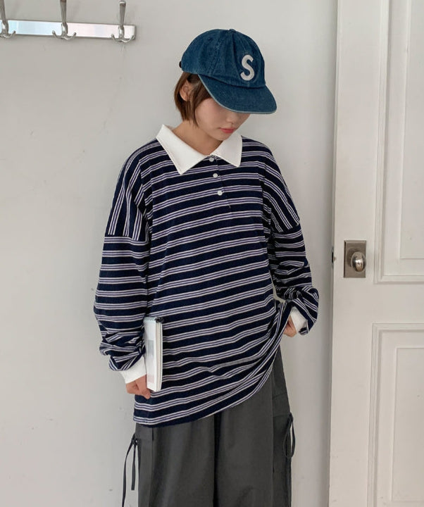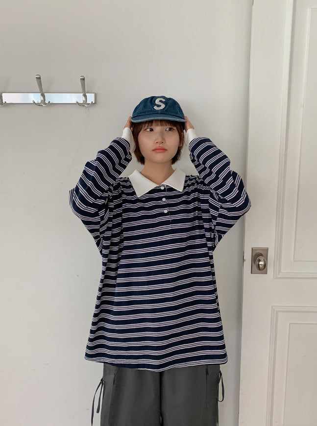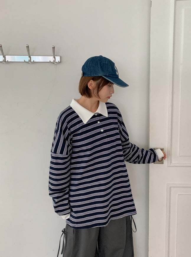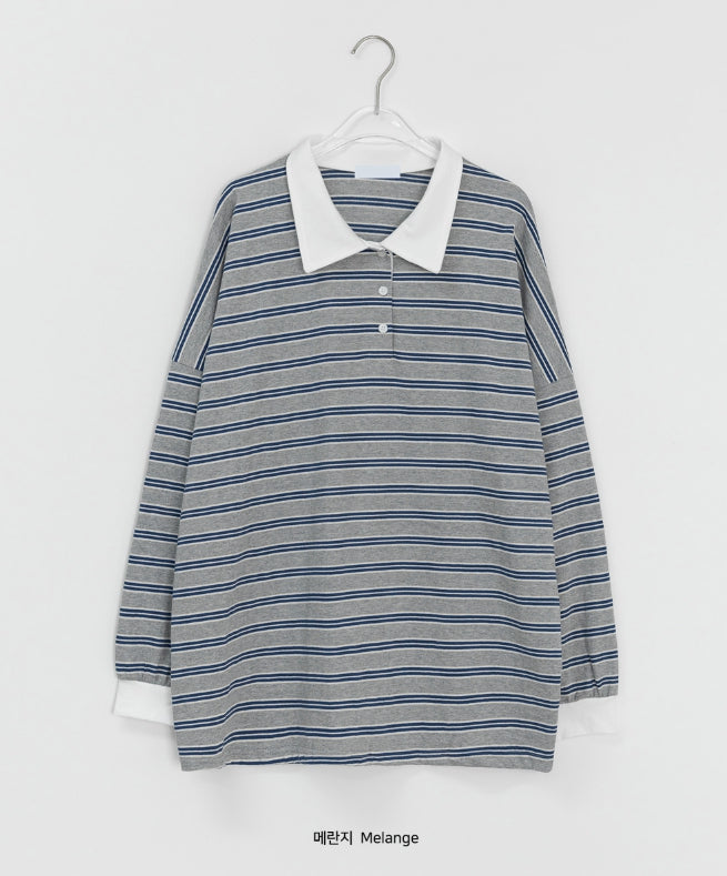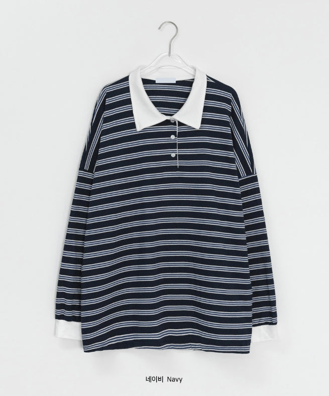 [Unisex] Melandy Stripe Collar Long Sleeve Tee