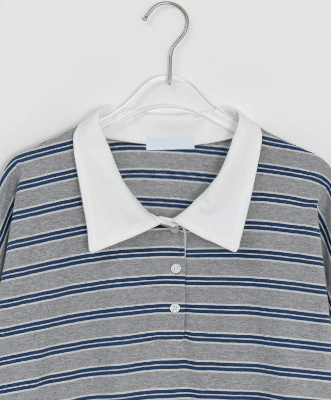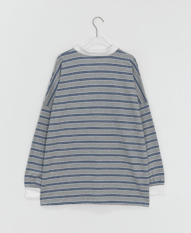 [男女共用]メランディボーダー襟付き長袖Tシャツ