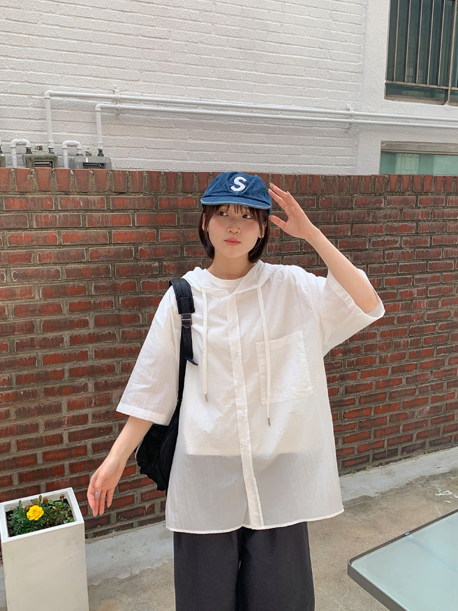 [unisex] Melter Summer Nylon Hood Short Sleeve Shirt