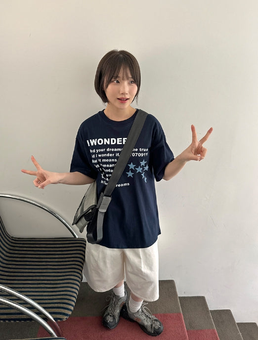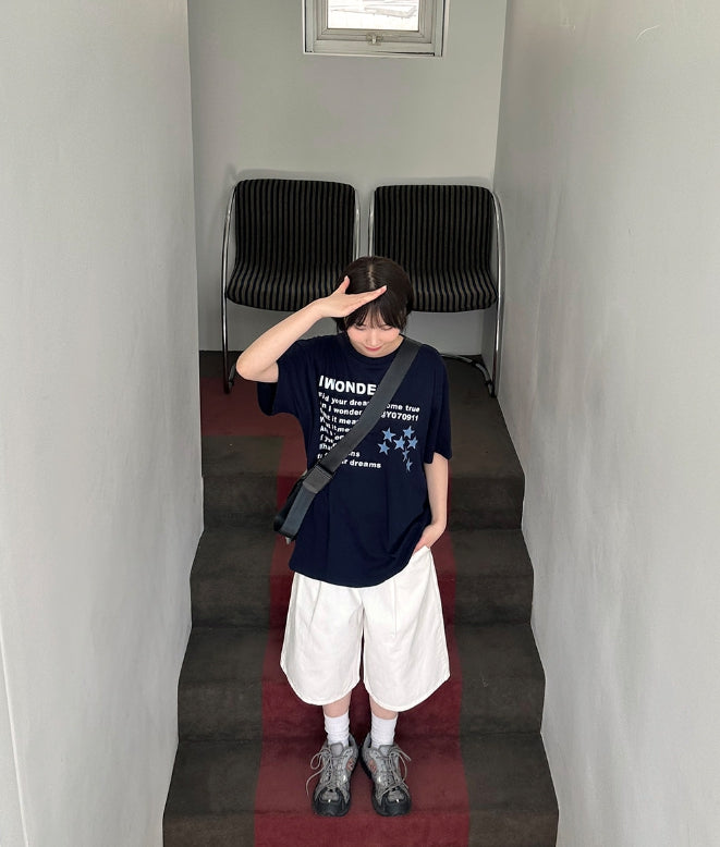 [unisex] Met Star Printing Over Short Sleeve Tee