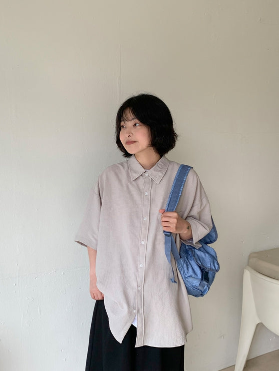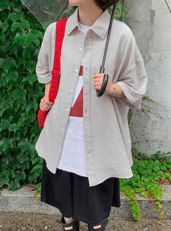 [unisex] Midender Summer Seersucker Over Short Sleeve Shirt
