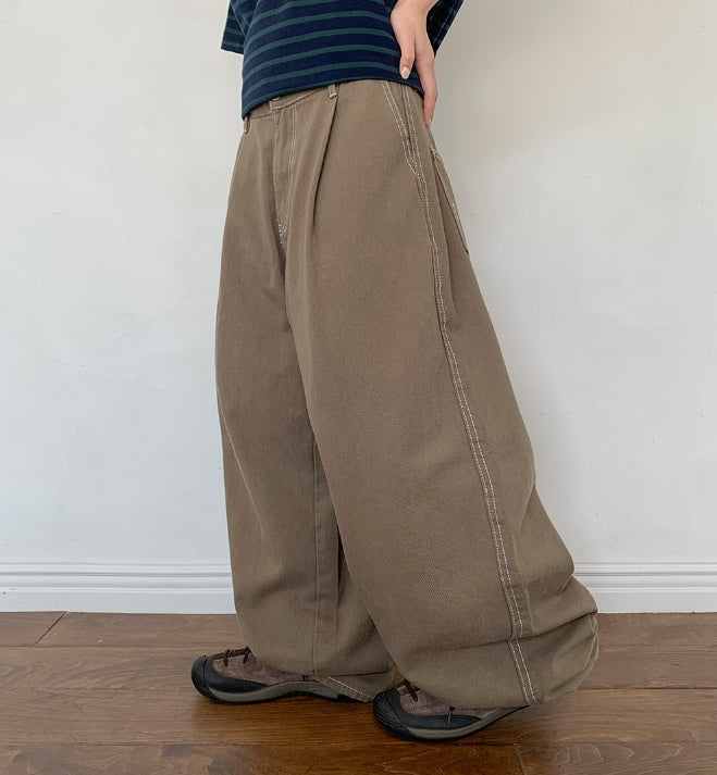 [男女兼用]ミグロンピンタックコットンワイドパンツ