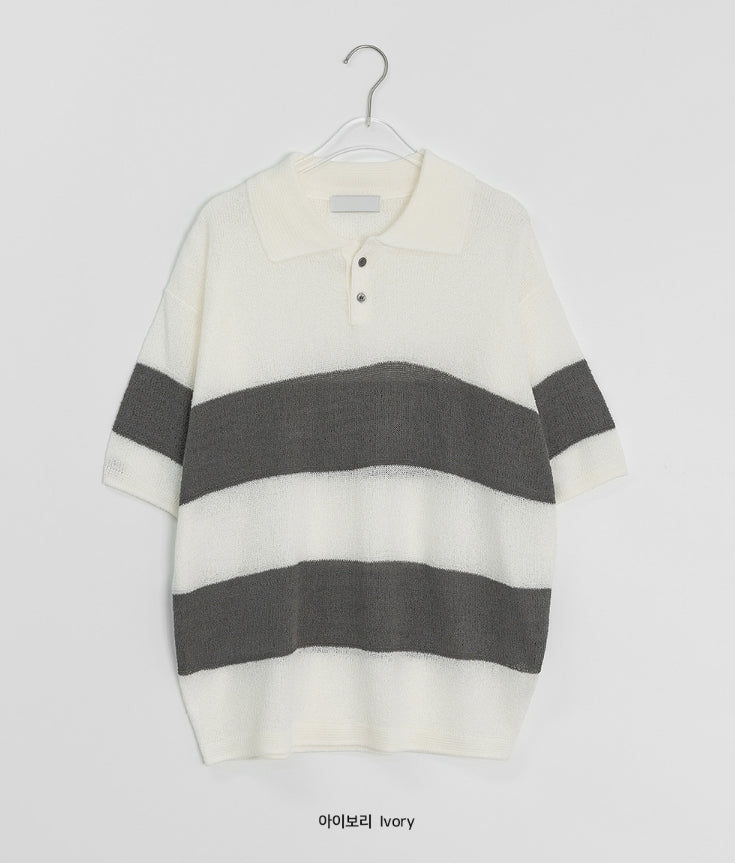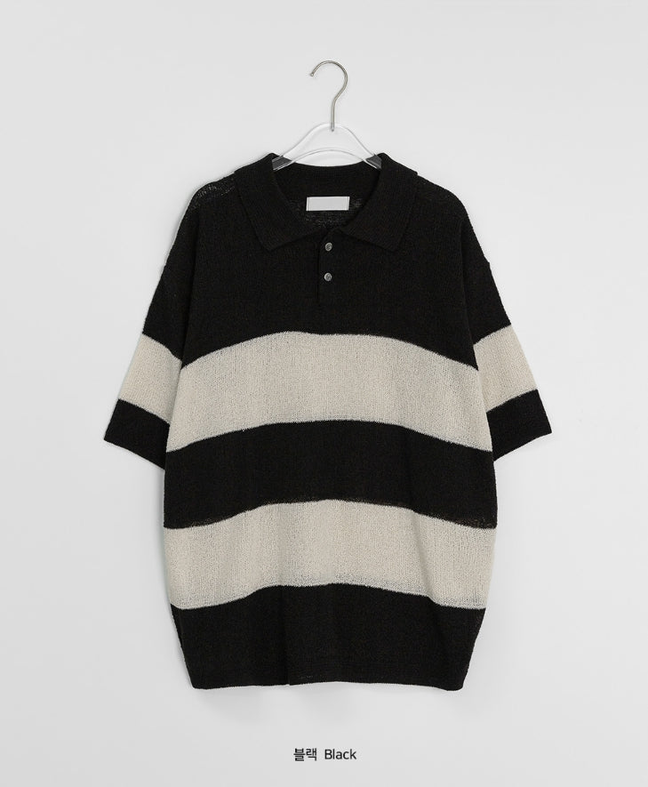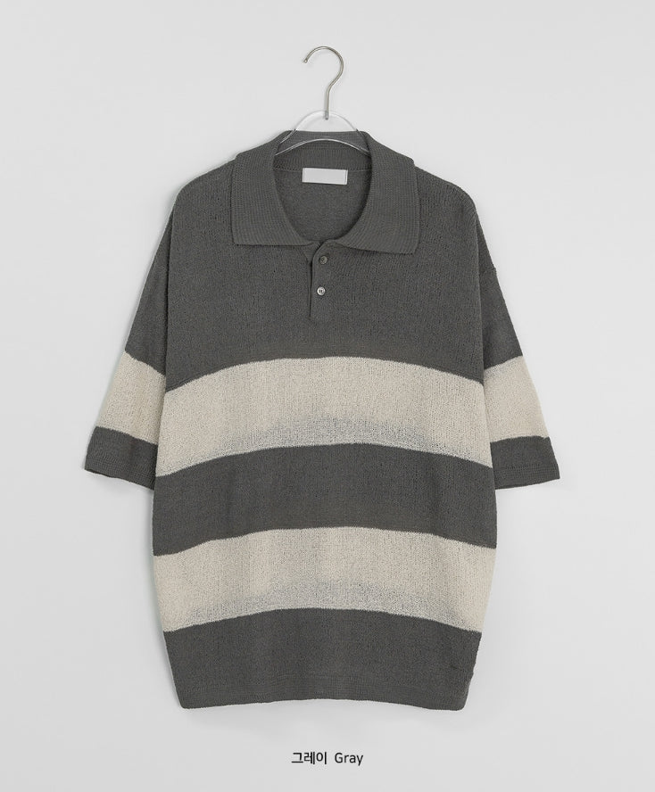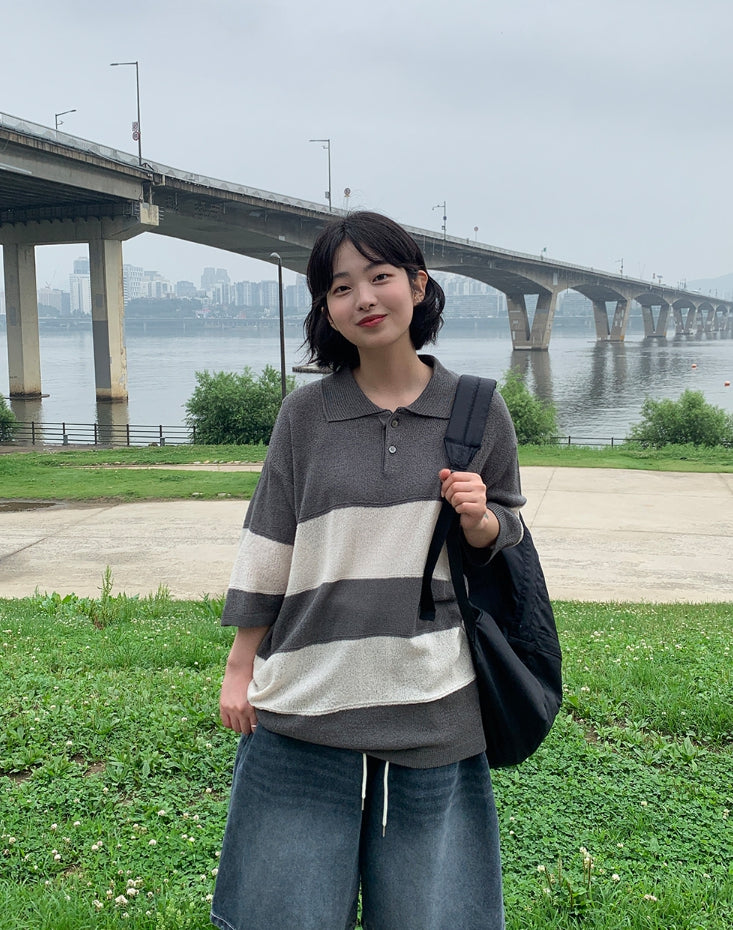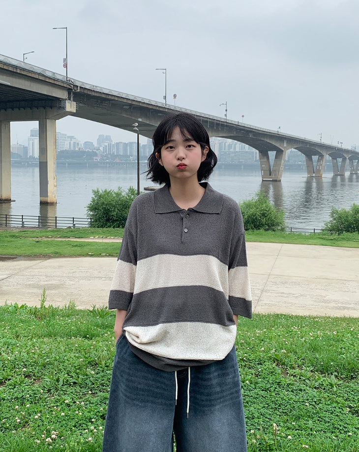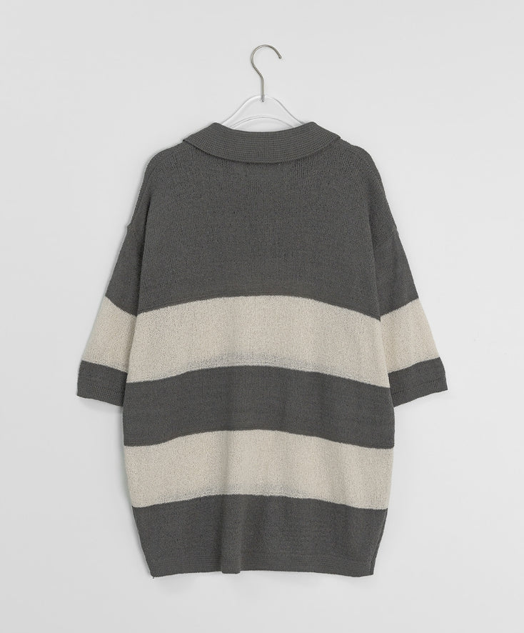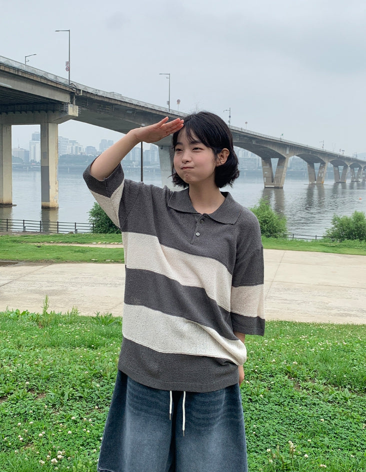 [Unisex] Minke Boucle Stripe Collar Short Sleeve Knit