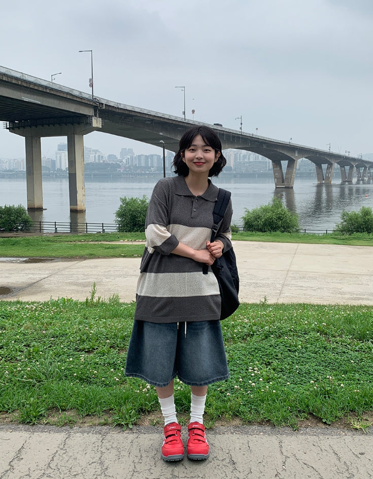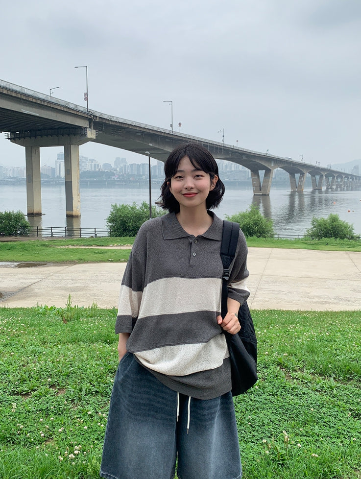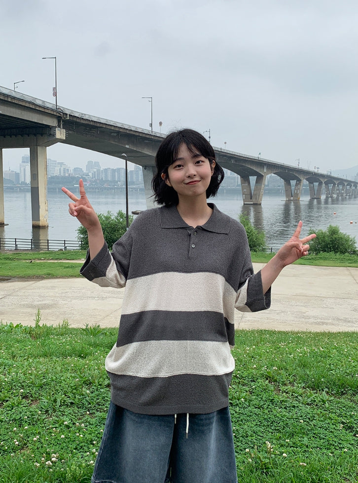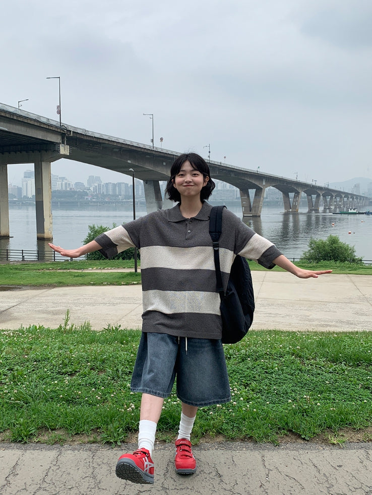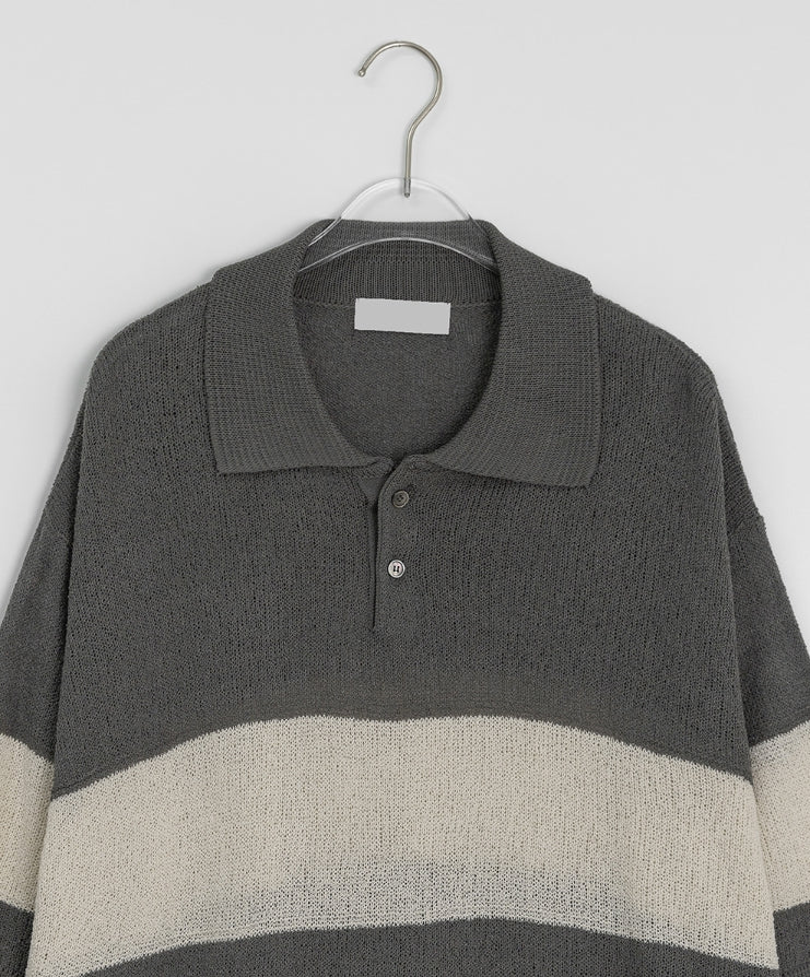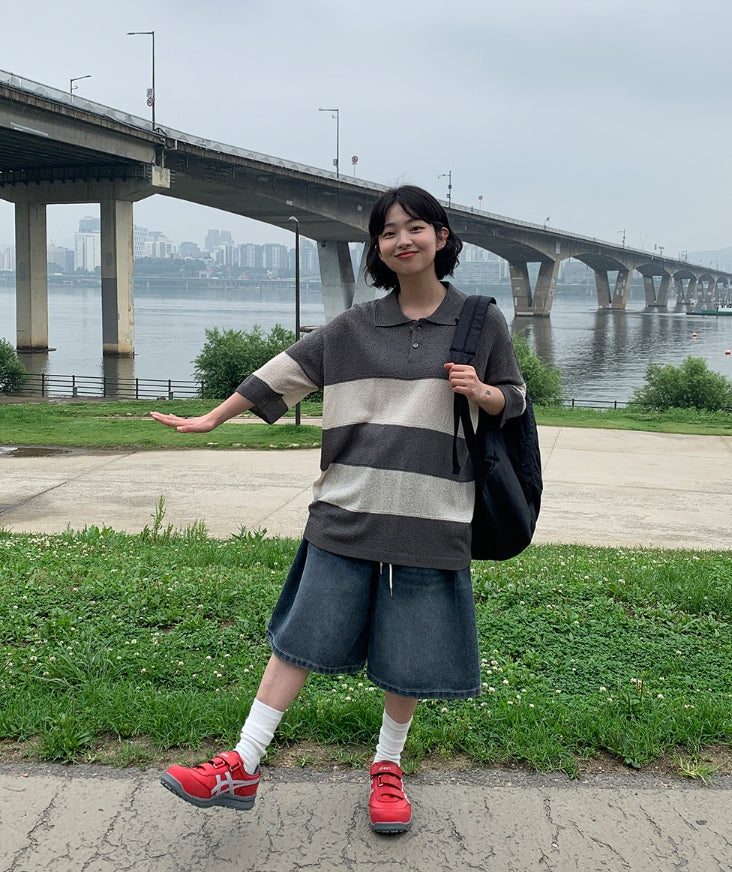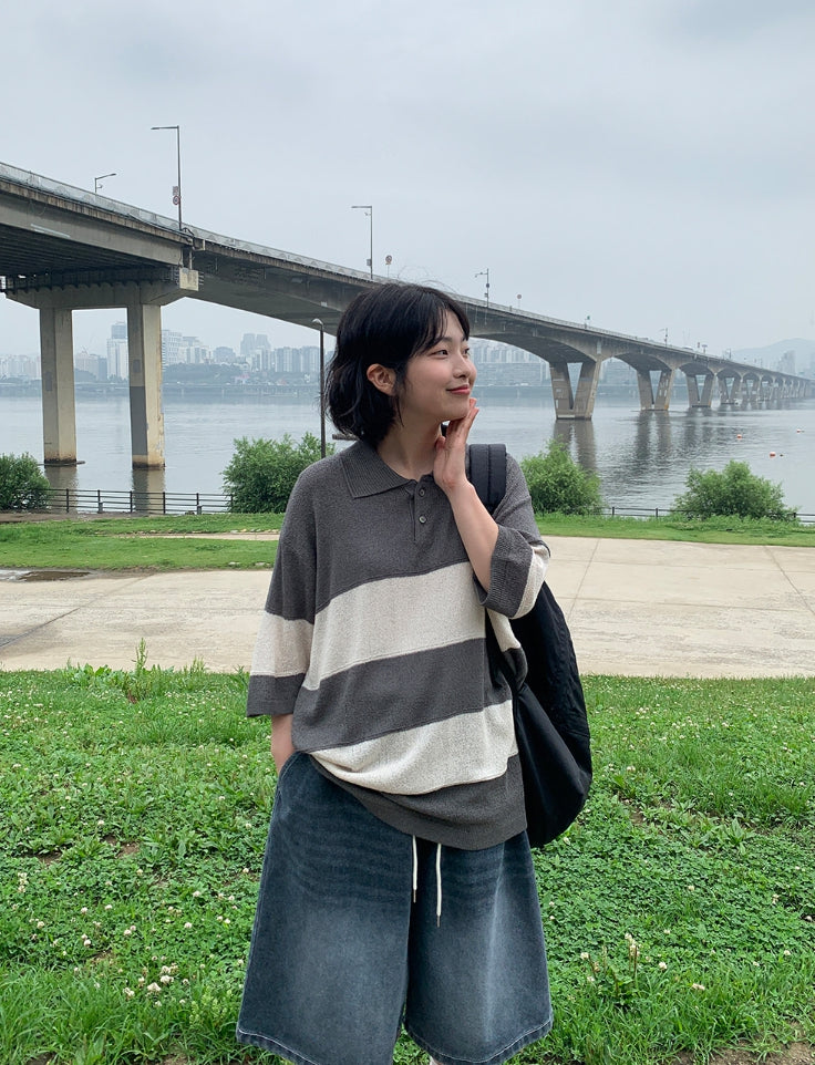 [Unisex] Minke Boucle Stripe Collar Short Sleeve Knit