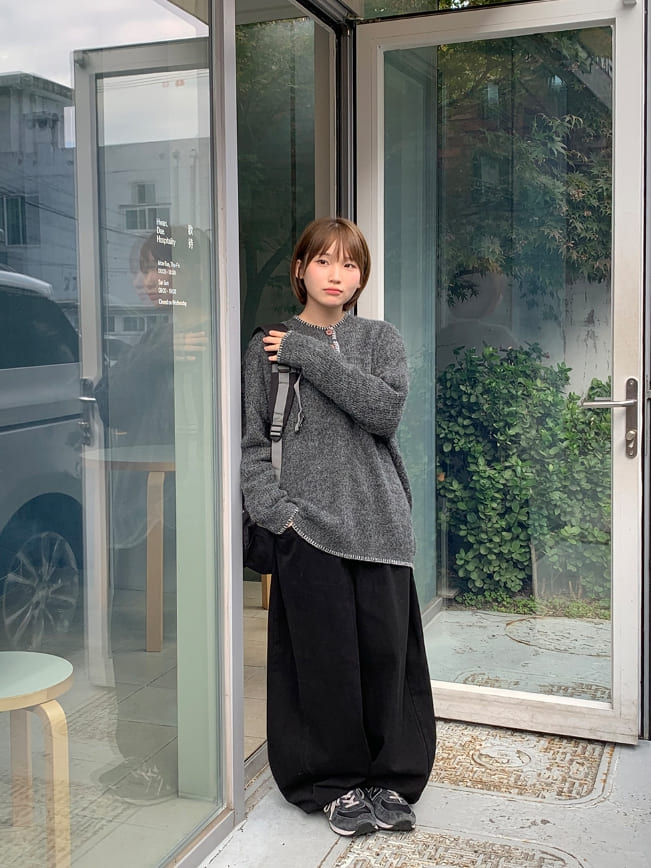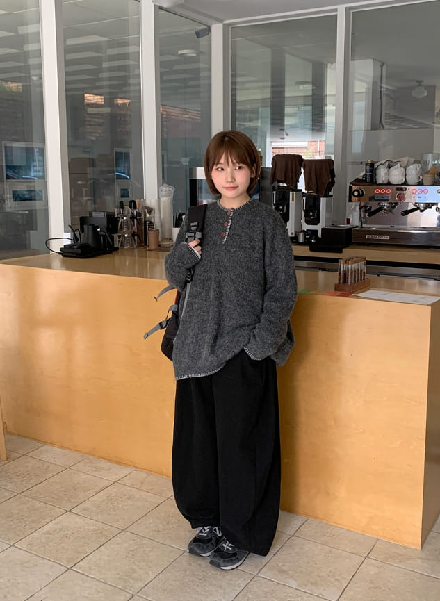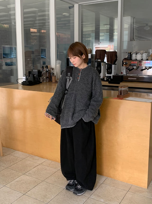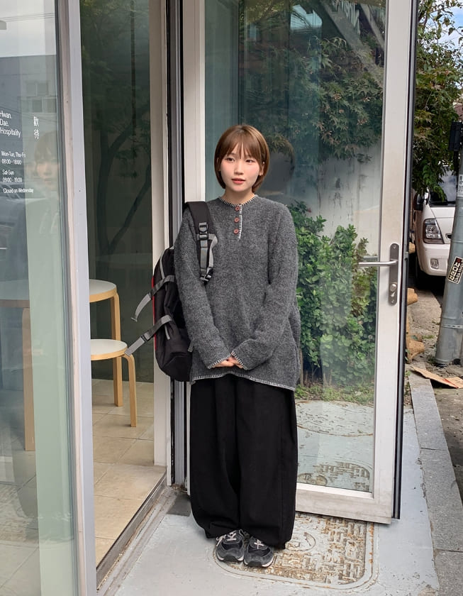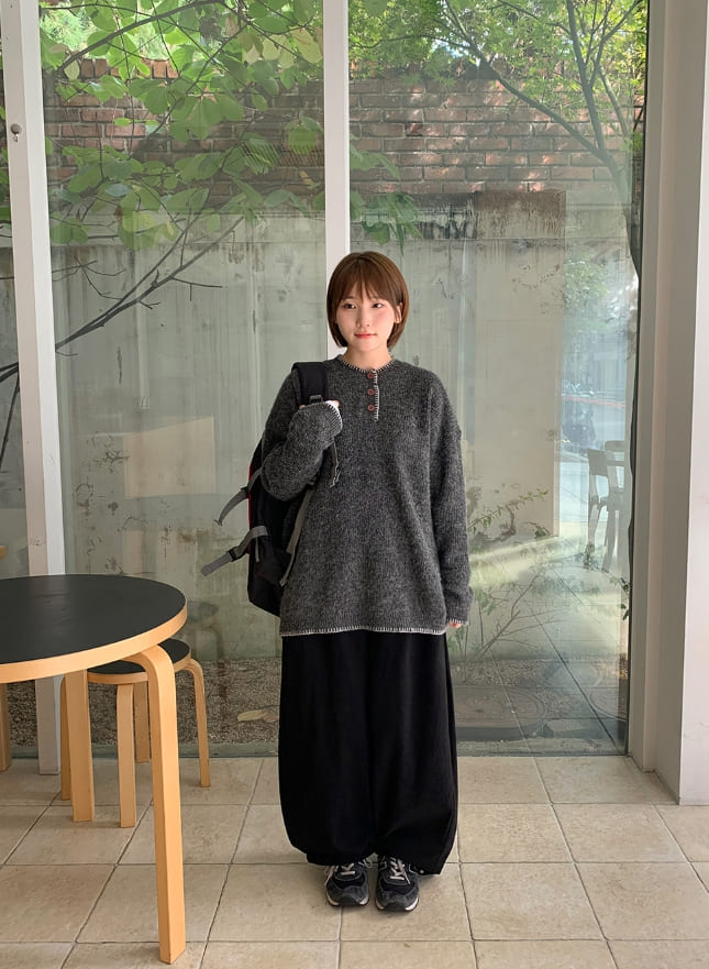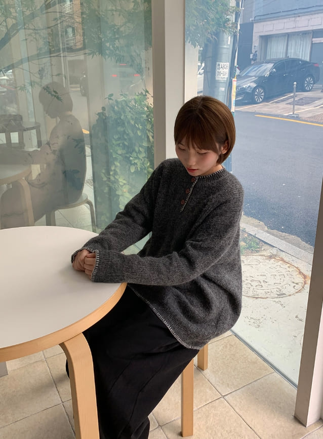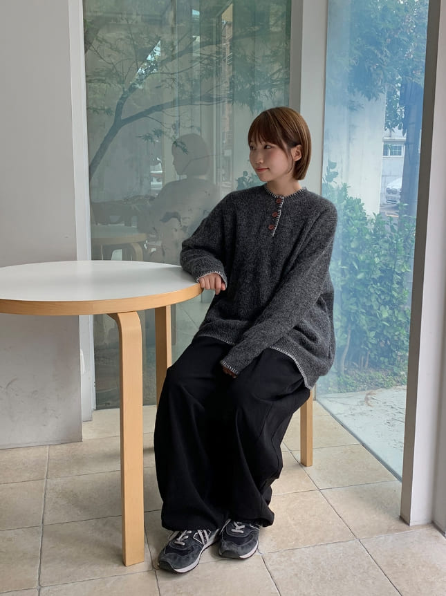 [男女兼用]ミットポニーボタンカラーミックスウールオーバーニット