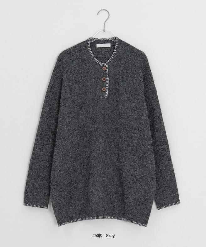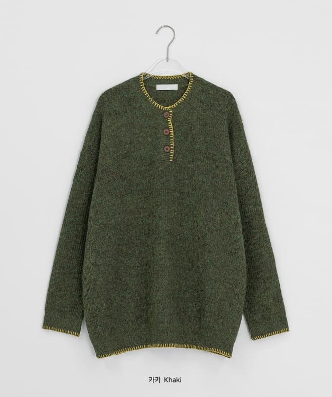 [Unisex] Mitpony Button Color Mix Wool Over Knit